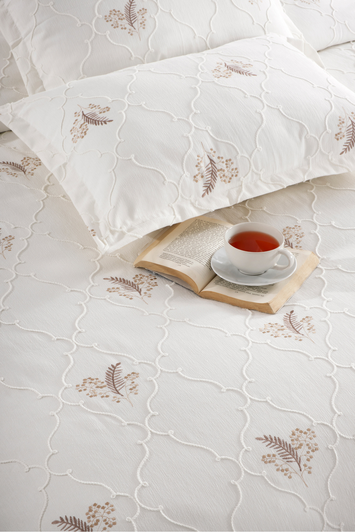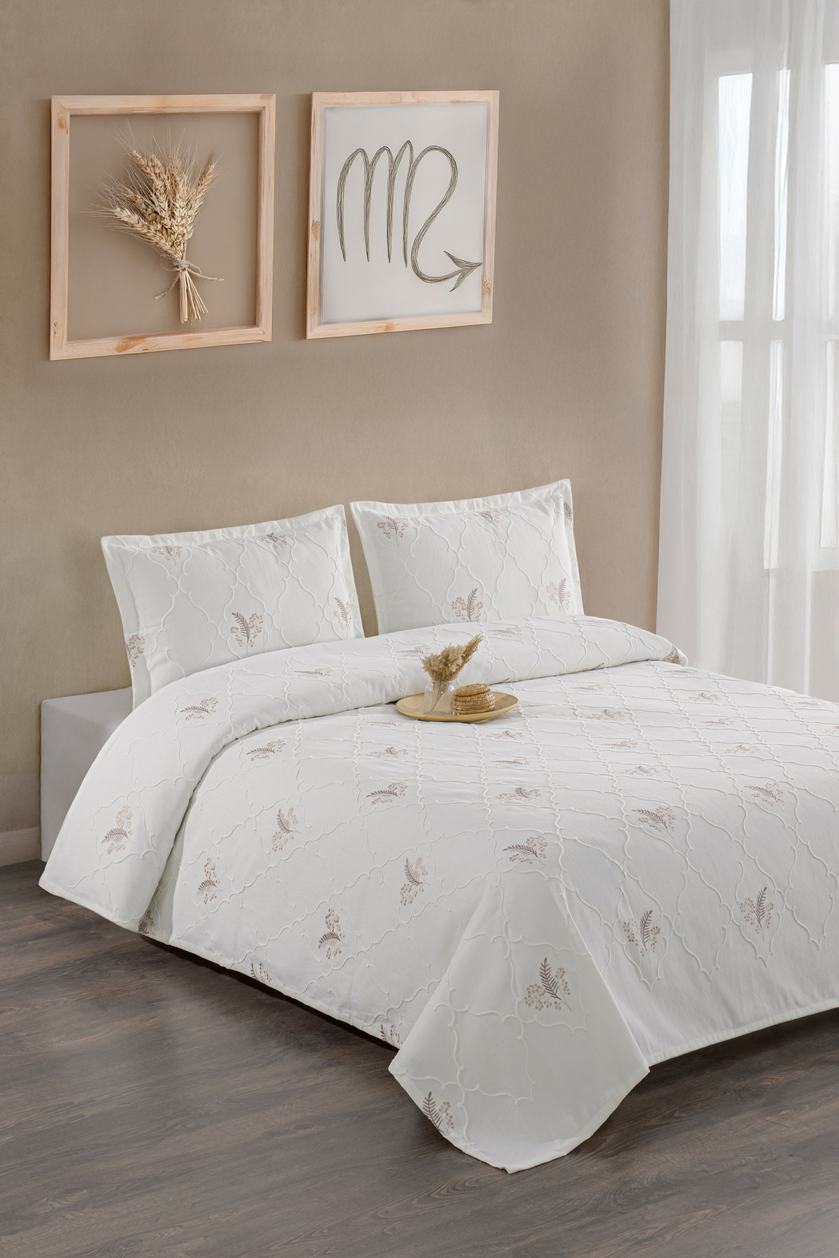 Başak Ekru Kahve Yapraklı Nakışlı Çift Kişilik Pike Örtü 3 Parça Yatak Örtüsü Başak Ekru Kahve Yapraklı Nakışlı Çift Kişilik Pike Örtü 3 Parça Yatak Örtüsü BAŞAK-ÇK-CNDN تک سایز
