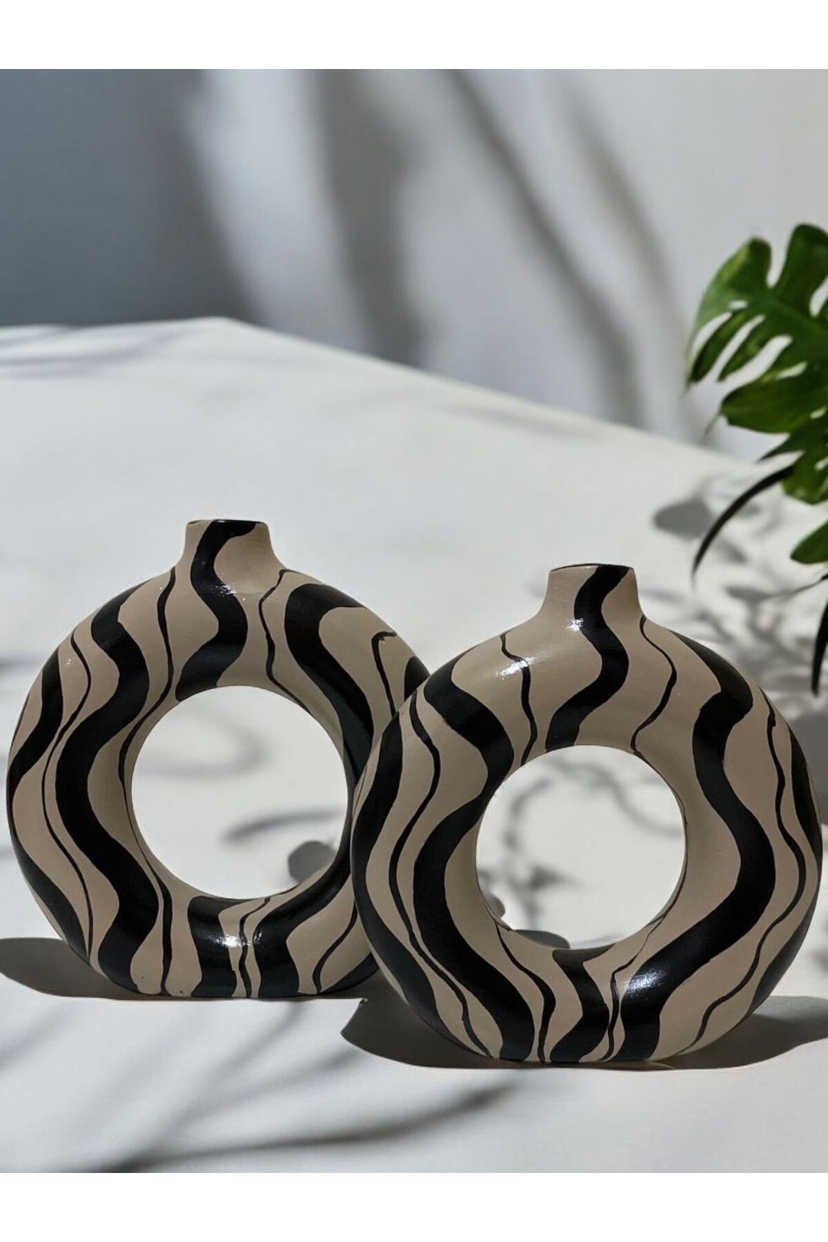 El Yapımı Lüks Siyah Gümüş 2'li Halka Vazo ve Mumluk Seti | Modern Alçı Dekor (18 cm) El Yapımı Lüks Siyah Gümüş 2'li Halka Vazo ve Mumluk Seti | Modern Alçı Dekor (18 cm) 4-prs2025 تک سایز
