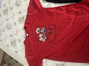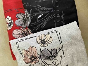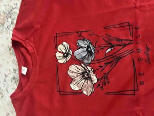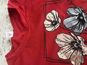 Be Smile Çiçek Baskılı Pamuk Penye Kırmızı Tişört Be Smile Çiçek Baskılı Pamuk Penye Kırmızı Tişört Ç.K100013 2XL