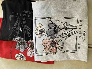 Be Smile Çiçek Baskılı Pamuk Penye Gri Tişört Be Smile Çiçek Baskılı Pamuk Penye Gri Tişört Ç.K100013 2XL