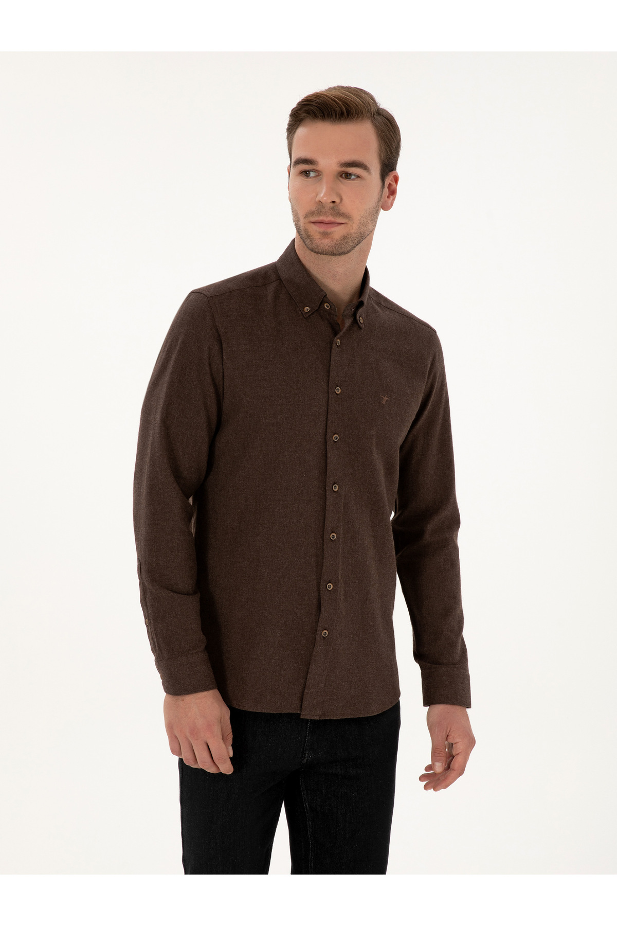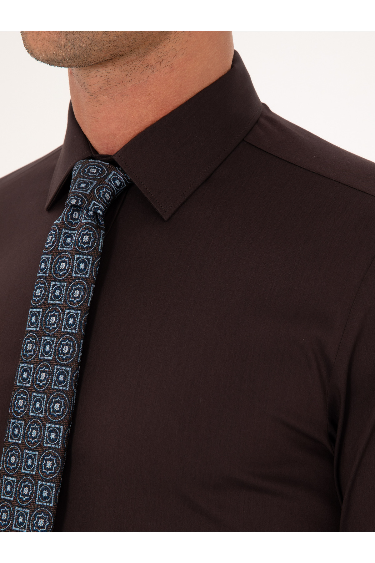 Koyu Kahverengi Slim Fit Non Iron Pamuk Karışımlı Klasik Gömlek 50305838-VR084 Koyu Kahverengi Slim Fit Non Iron Pamuk Karışımlı Klasik Gömlek 50305838-VR084 1176834 44