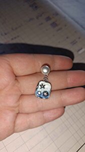Mavi Deniz Detylı İncili Küpe Mavi Deniz Detylı İncili Küpe 25G024 تک سایز