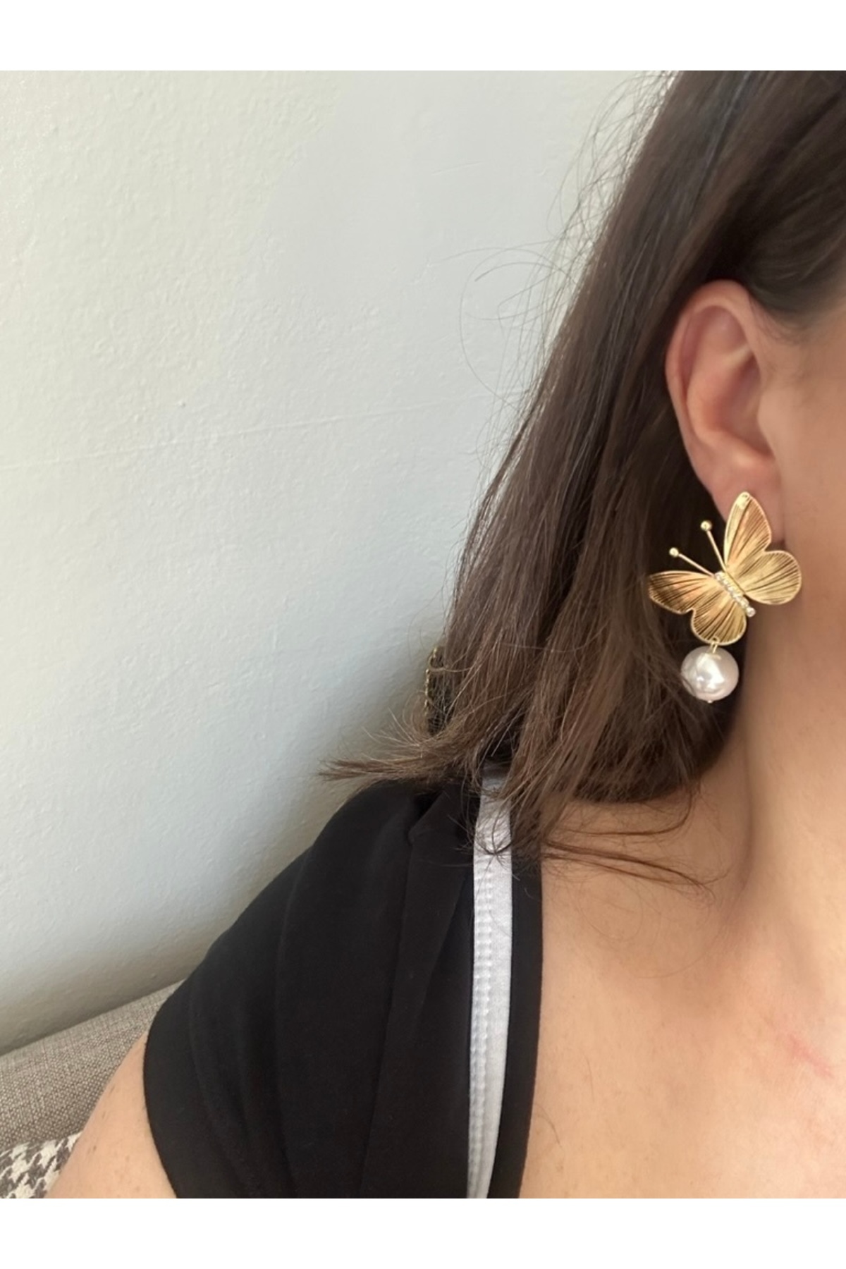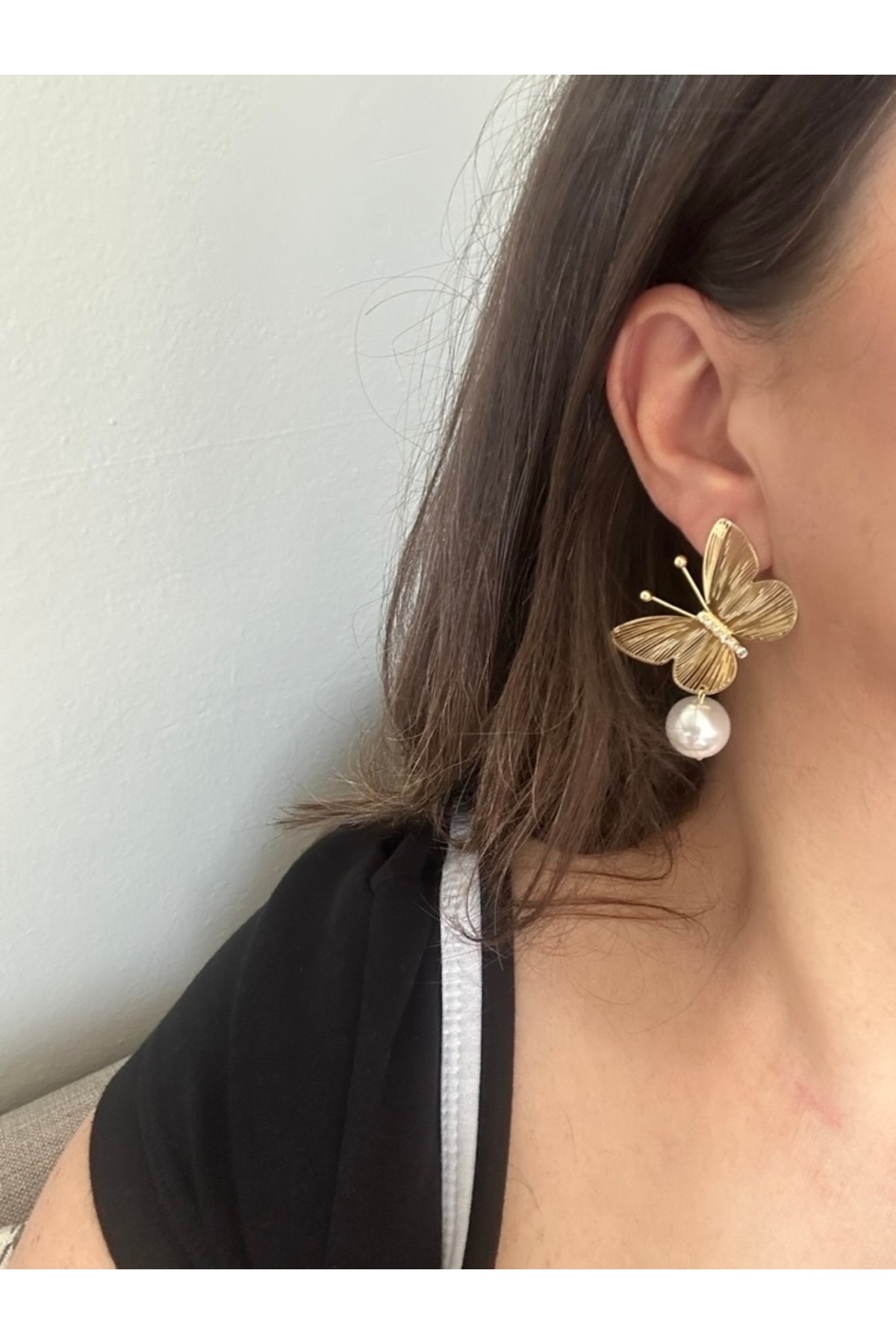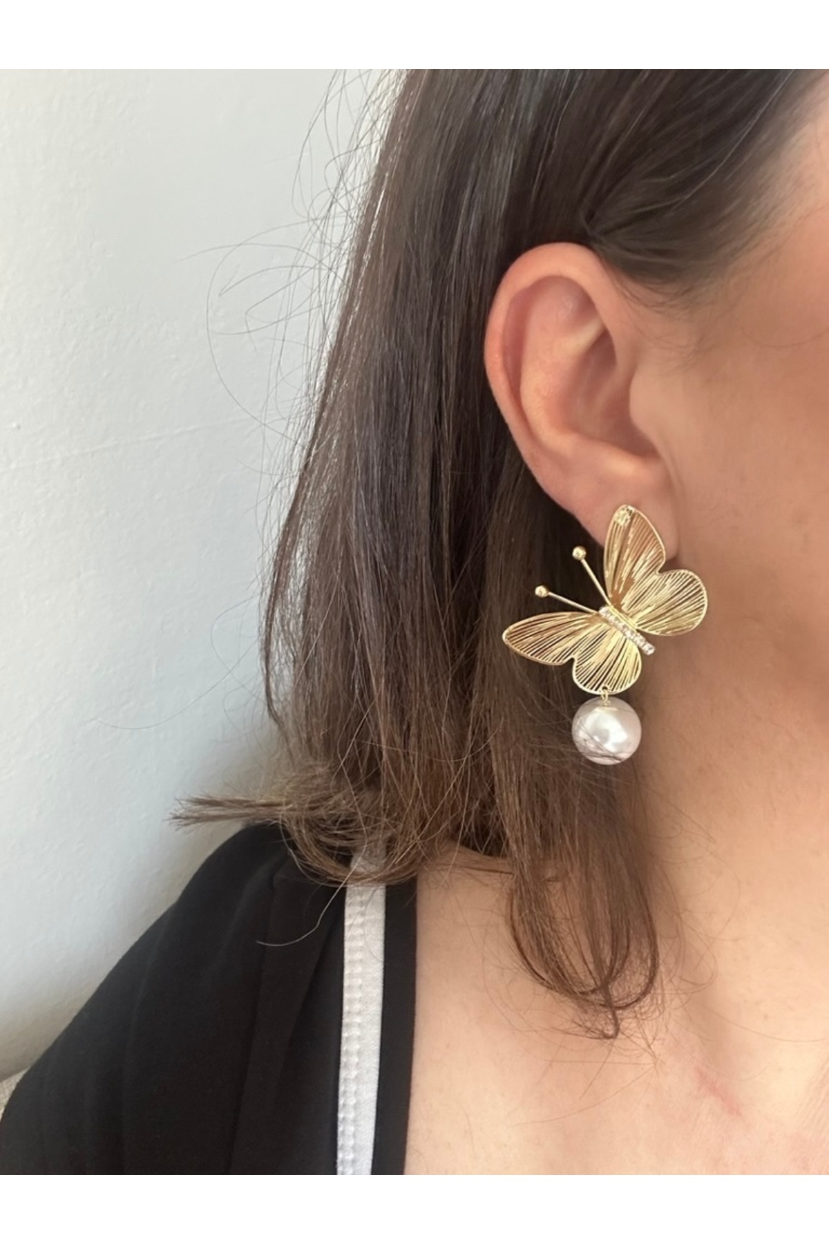 Kadın Gold Renk Kelebek Model Ucu İncili Zarif Şık Küpe Kadın Gold Renk Kelebek Model Ucu İncili Zarif Şık Küpe als.190 تک سایز