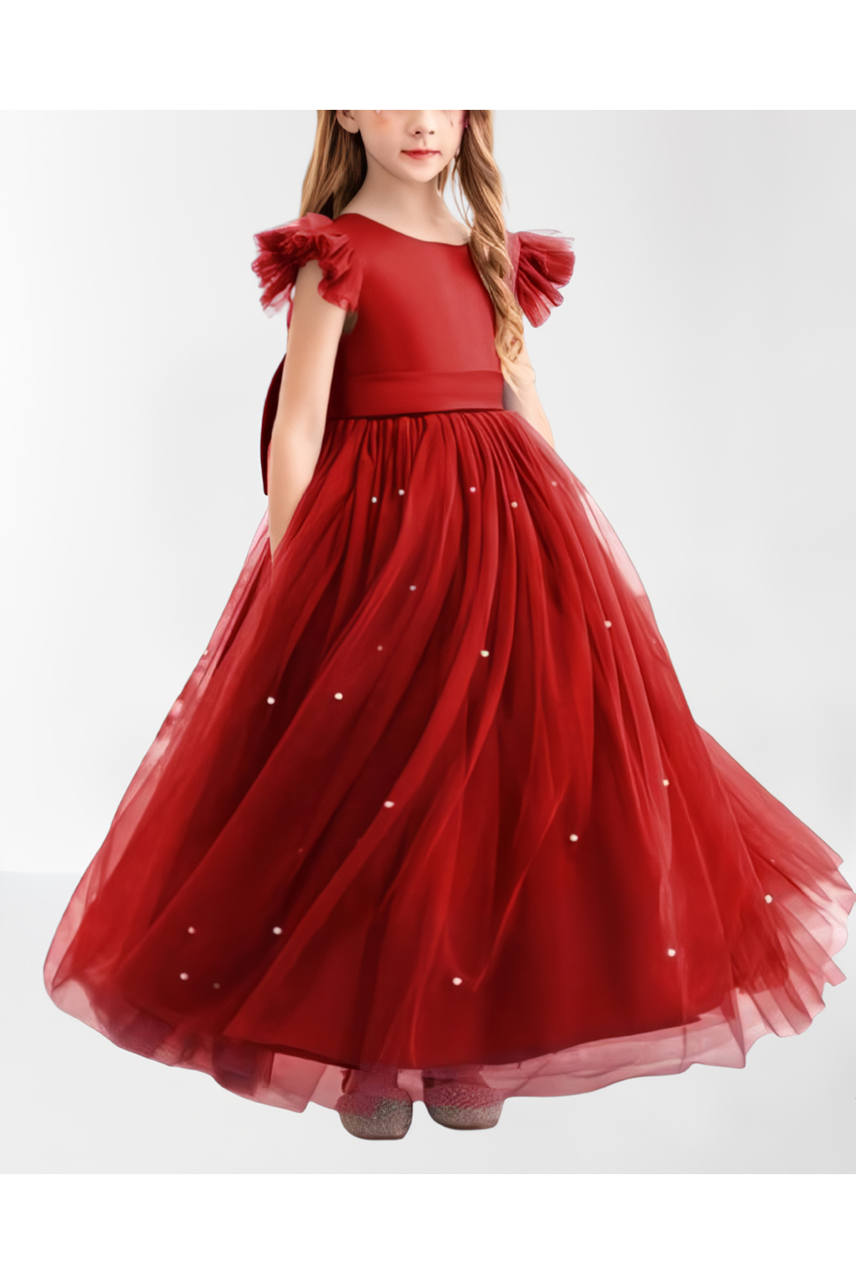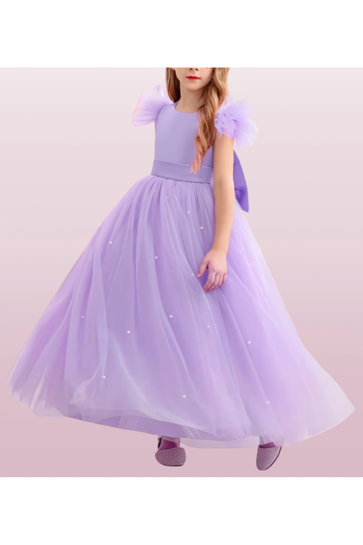 Kız Çocuk Lila Büzgülü/Fırfırlı Kol Uzun İncili Elbise Kız Çocuk Lila Büzgülü/Fırfırlı Kol Uzun İncili Elbise MAD50KİDS 15-16 Yaş