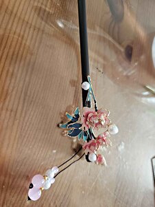 Pembe Çiçekli Japon Topuz Tokası Pembe Çiçekli Japon Topuz Tokası 25G041 تک سایز