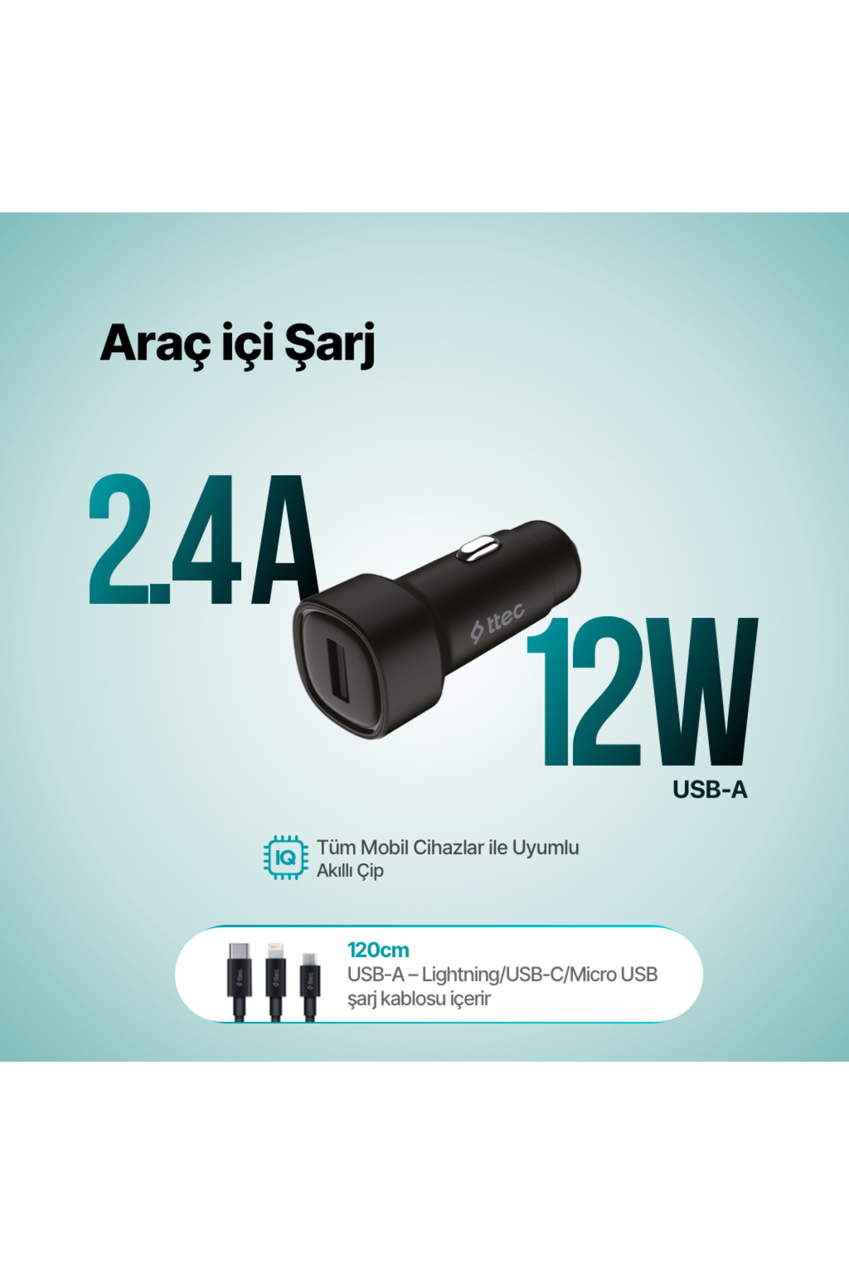 SmartCharger 2.4A Araç Şarj Aleti + Trio Kablo SmartCharger 2.4A Araç Şarj Aleti + Trio Kablo 2CKS30T تک سایز