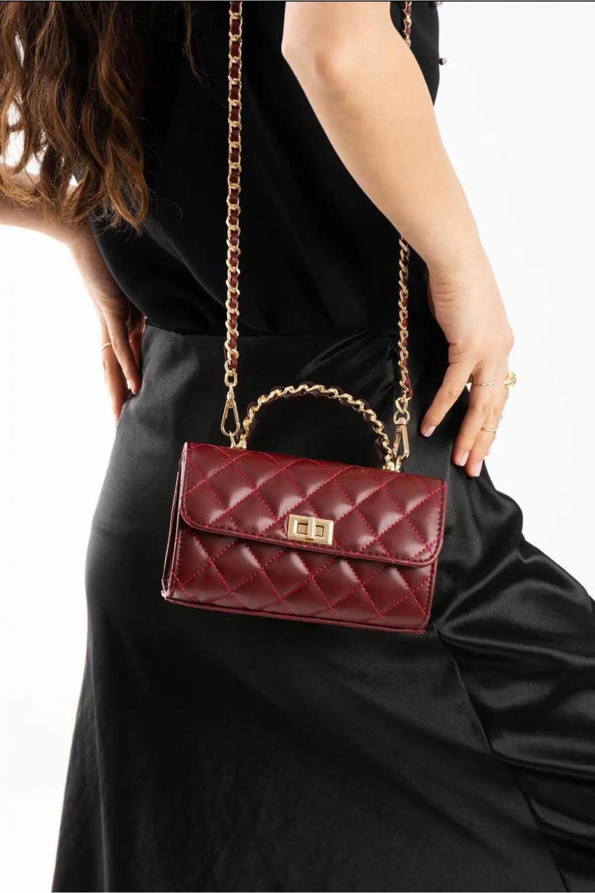 ÉNVA - Zincirli El ve Omuz Çantası - ÉNVA - Zincirli El ve Omuz Çantası - Bordo تک سایز