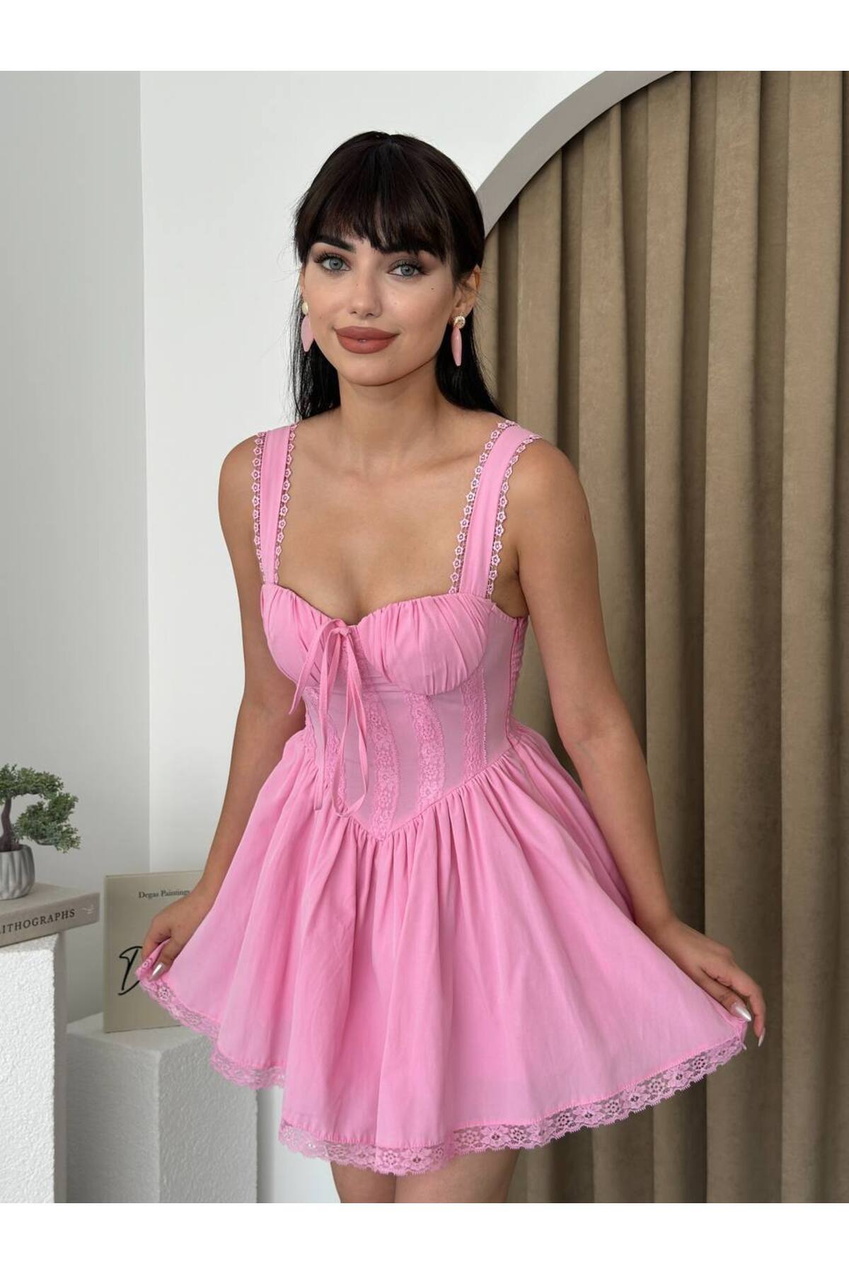 Poplin Arkası Bağlamalı Kalp Yaka Mini Elbise Poplin Arkası Bağlamalı Kalp Yaka Mini Elbise ELSE0018 L