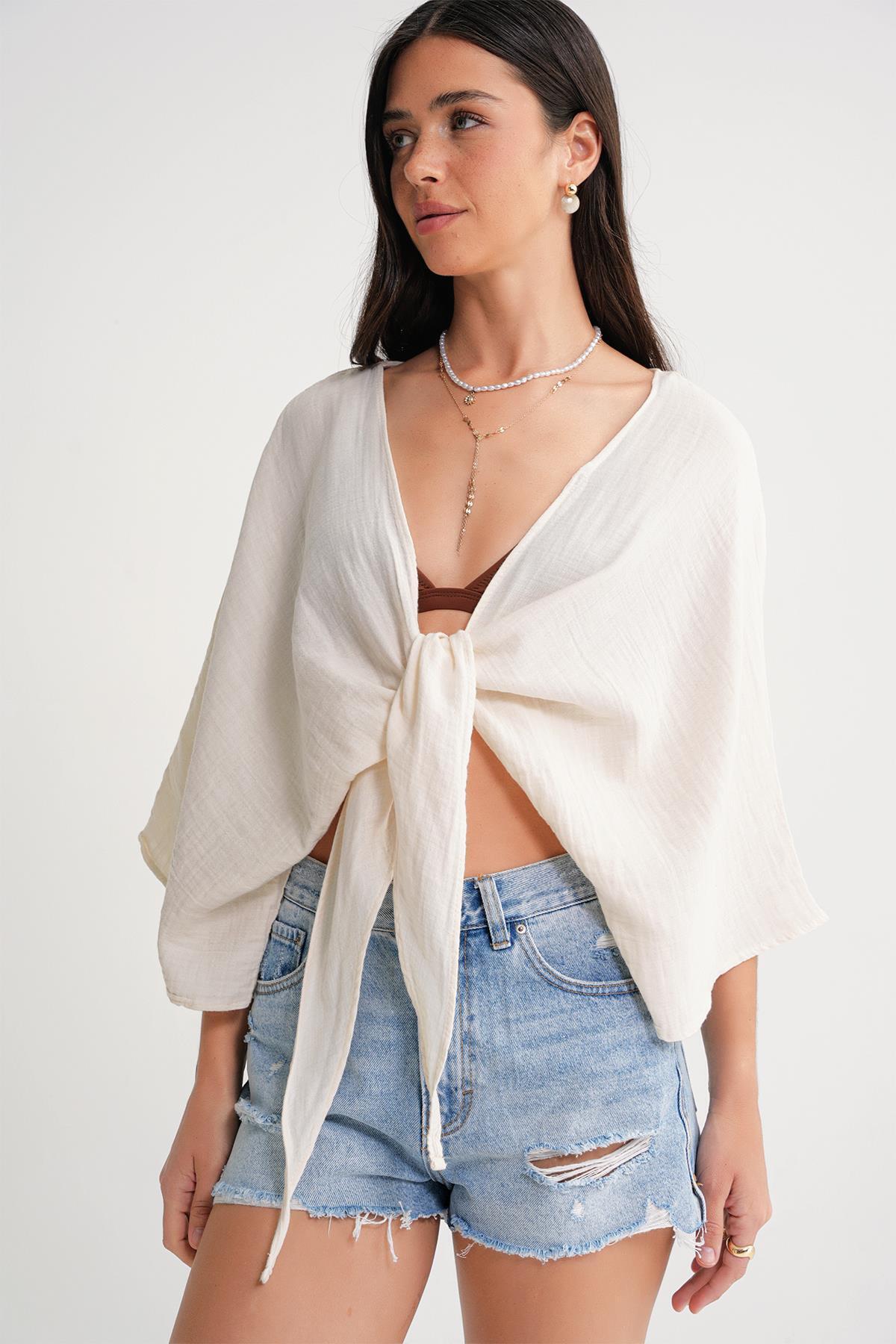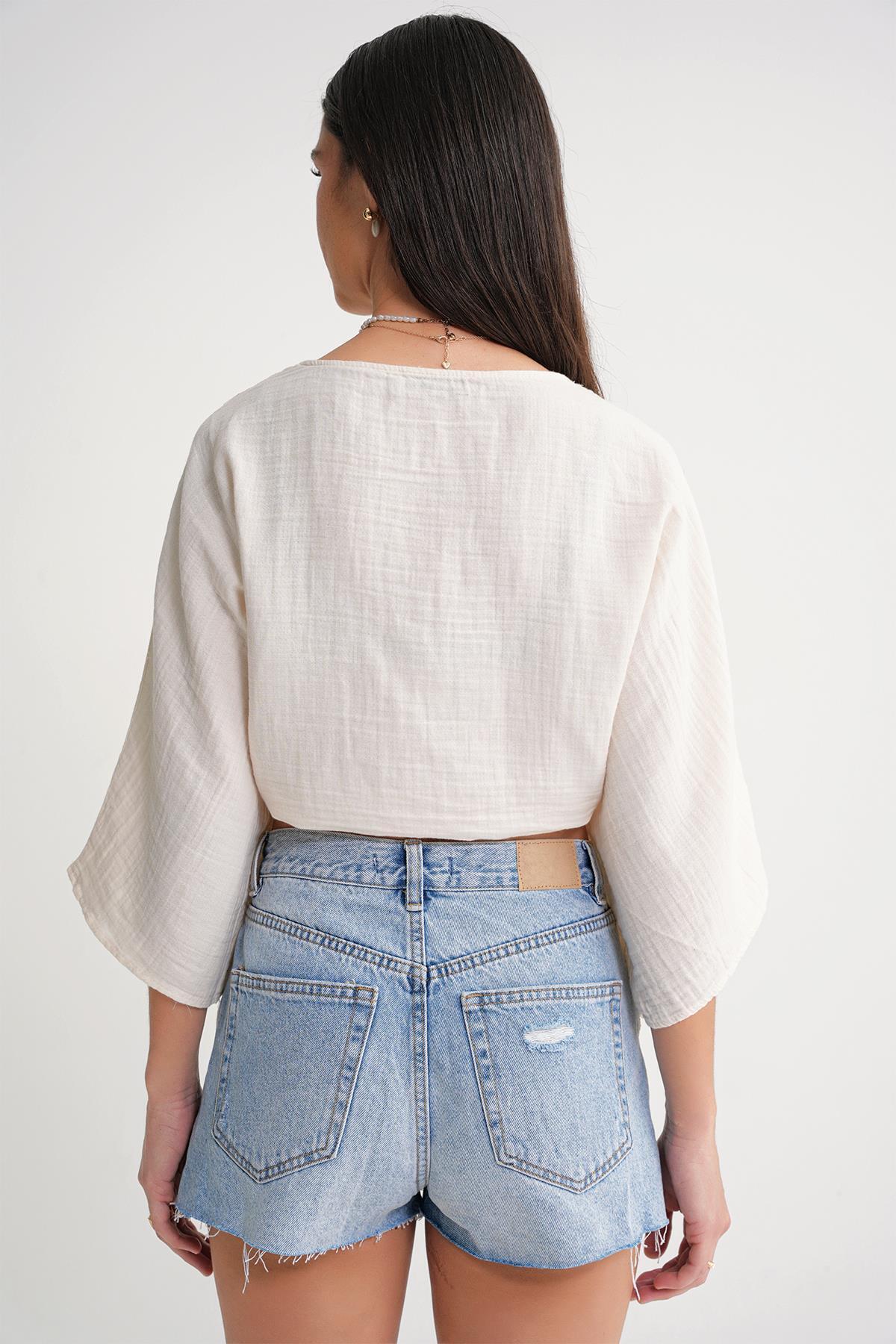 4723 Kadın Önü Bağlamalı Bolero Bluz Naturel 4723 Kadın Önü Bağlamalı Bolero Bluz Naturel Y25HRK4723 L