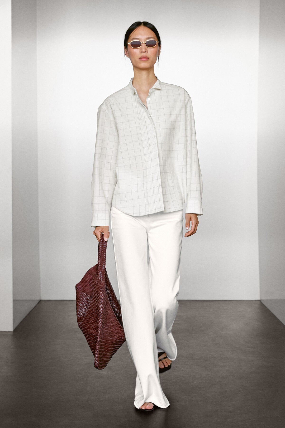 Drapeli asimetrik kenarlı %100 pamuklu gömlek Drapeli asimetrik kenarlı %100 pamuklu gömlek 00110779205120721 L