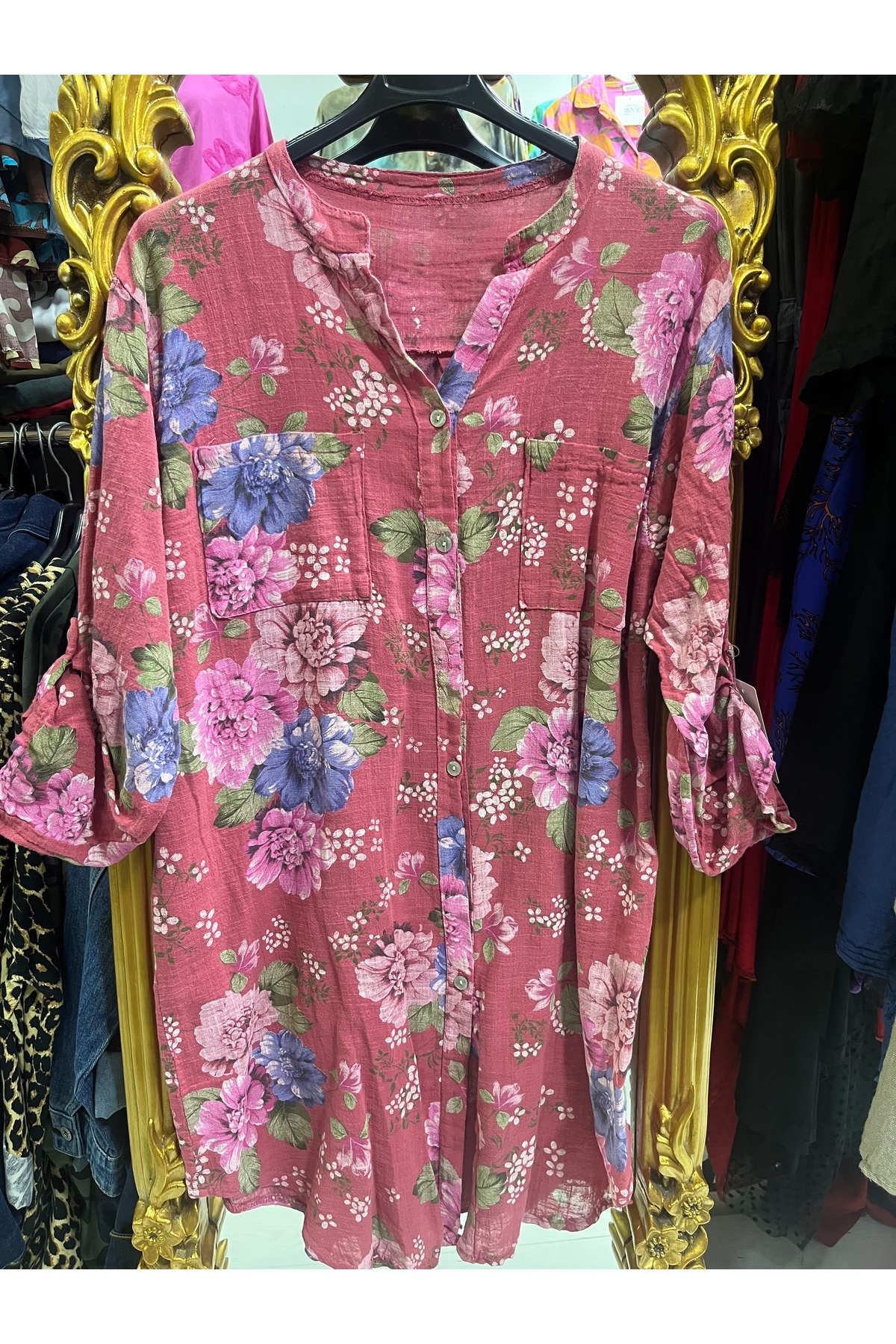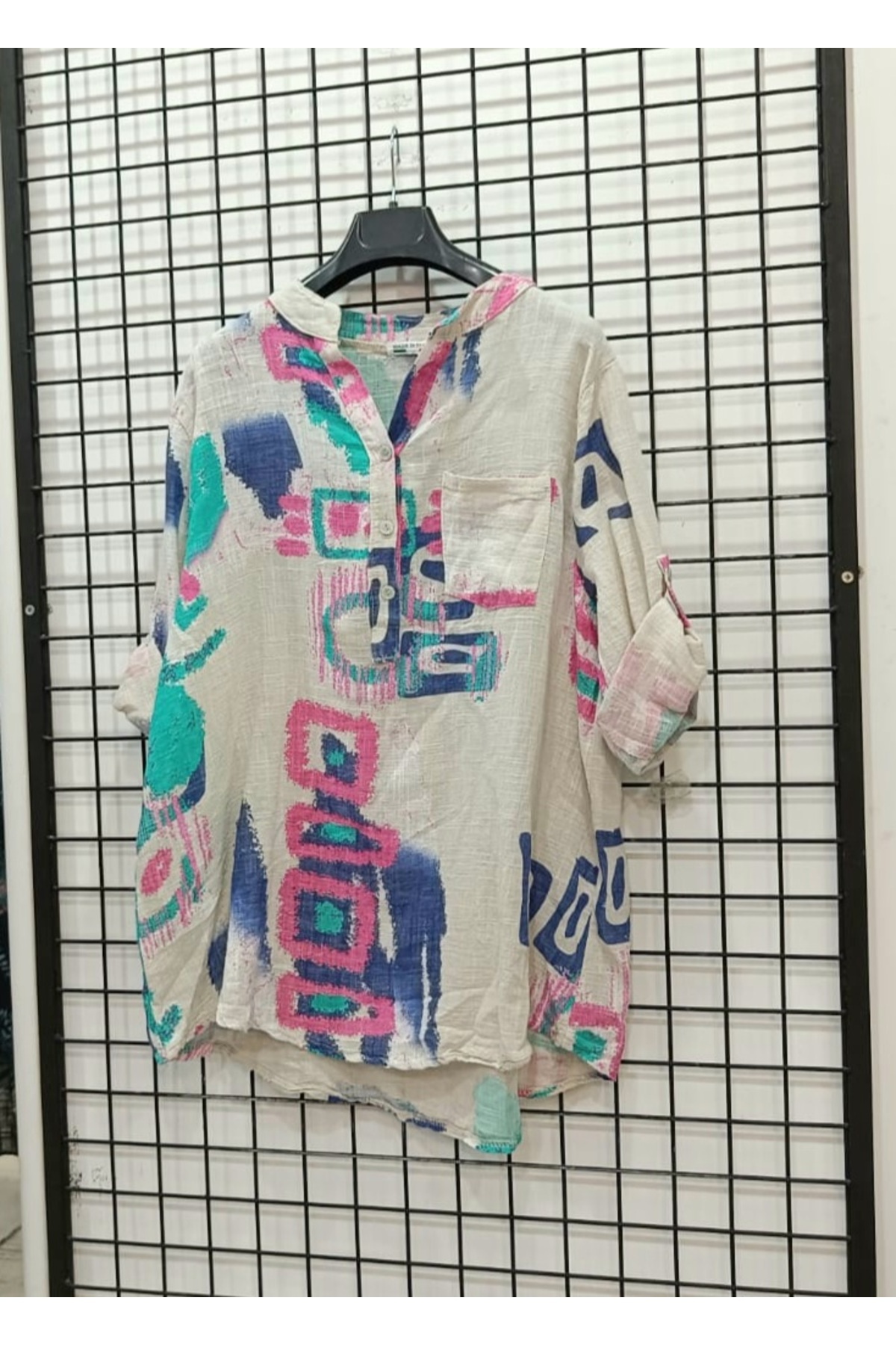 Desenli Cep Detaylı İtalyan Gömlek Bluz Desenli Cep Detaylı İtalyan Gömlek Bluz LUI50044 Standart