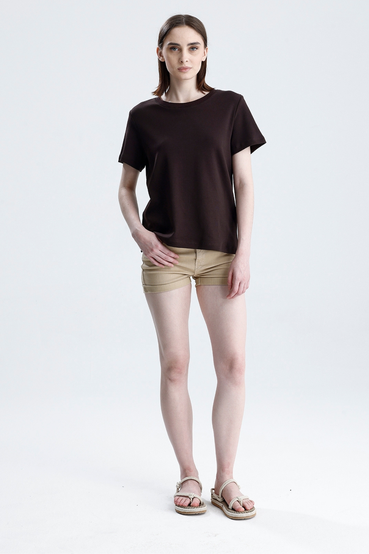 Kahverengi Regular Fit Basic Kadın T-Shirt %100 Pamuk Yırtmaçlı Kısa Kol Bisiklet Yaka Düz Renk Kahverengi Regular Fit Basic Kadın T-Shirt %100 Pamuk Yırtmaçlı Kısa Kol Bisiklet Yaka Düz Renk 8SFTRFK L