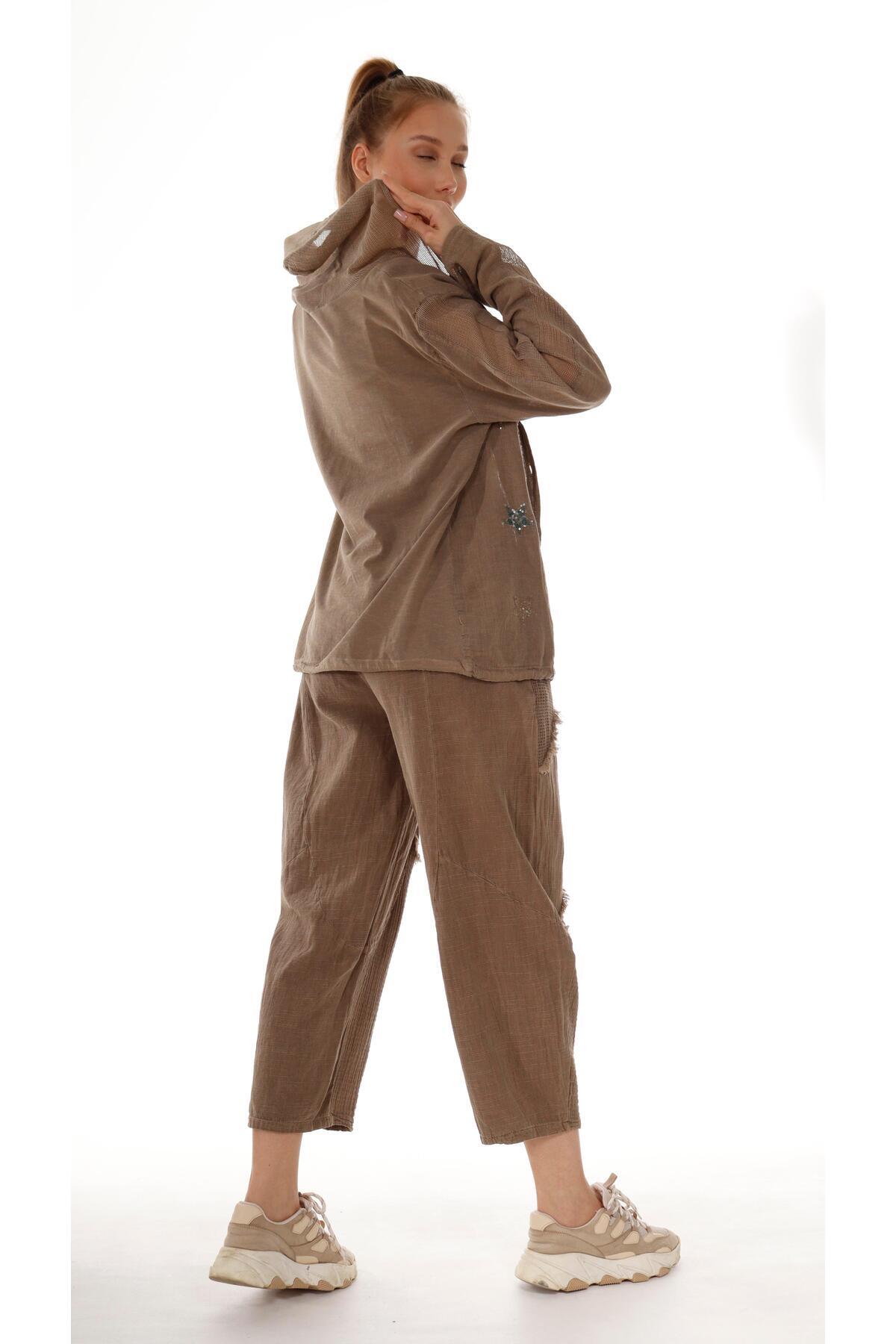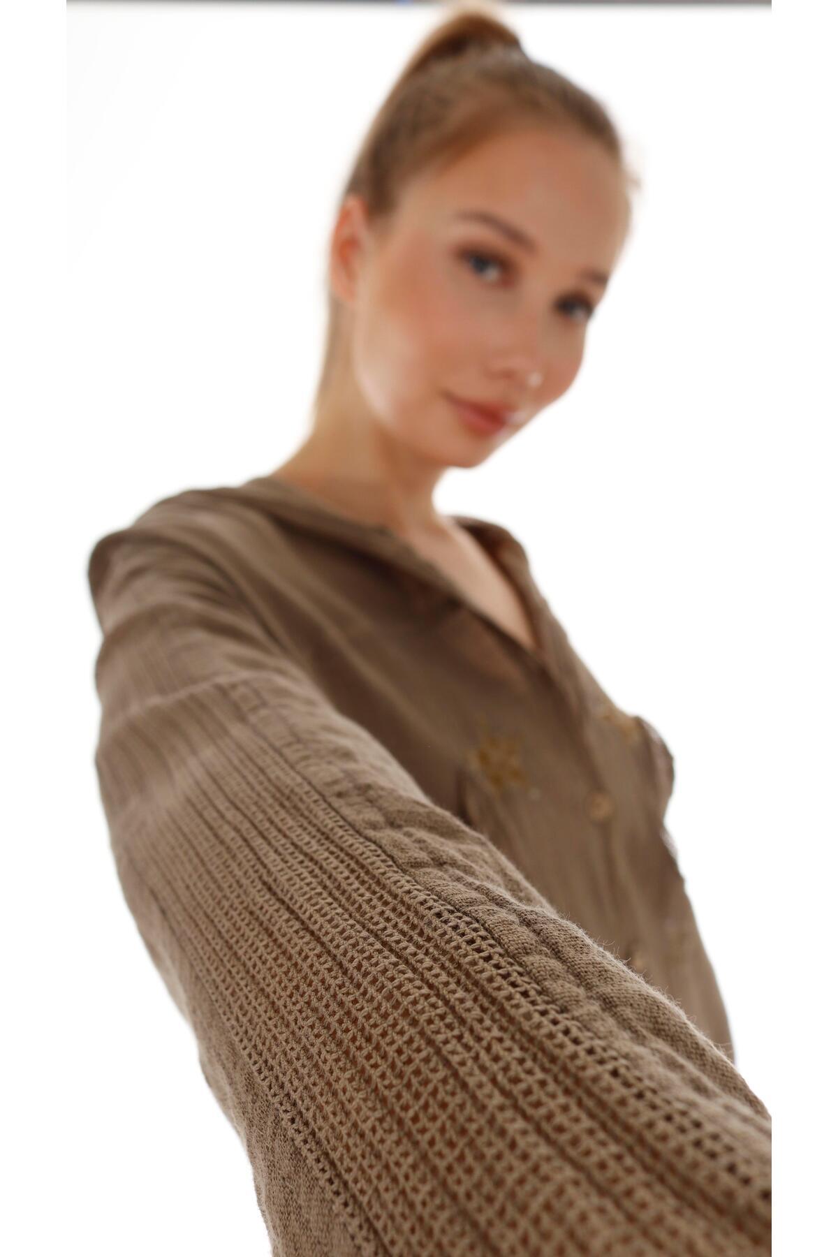 Yıldızlı Kapşönlü Gömlek Ceket Kahve Yıldızlı Kapşönlü Gömlek Ceket Kahve Rs 14AK L/XL