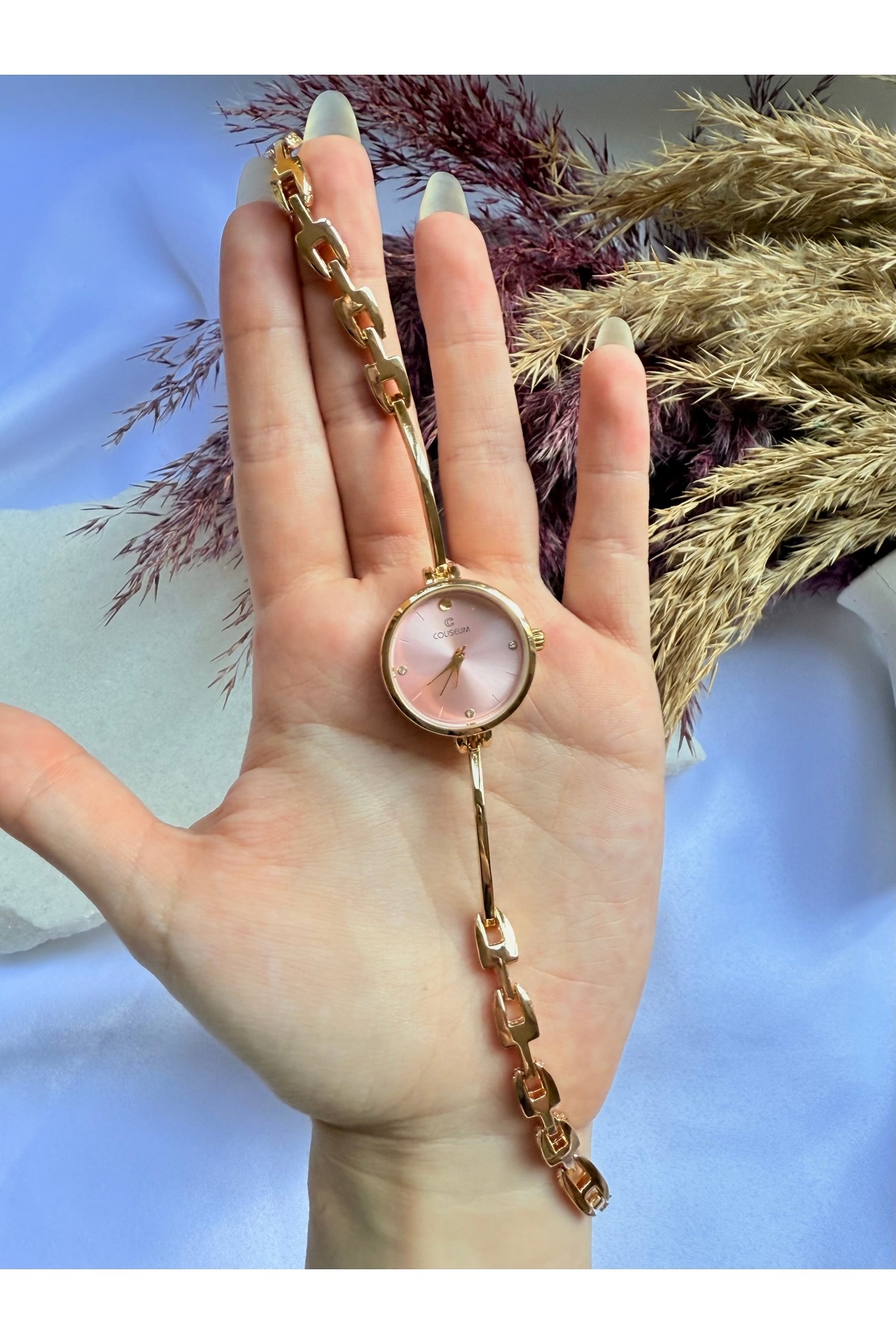 Yuvarlak Vintage Gold İçi Pembe Kadın Kol Saati Yuvarlak Vintage Gold İçi Pembe Kadın Kol Saati TD1334 تک سایز