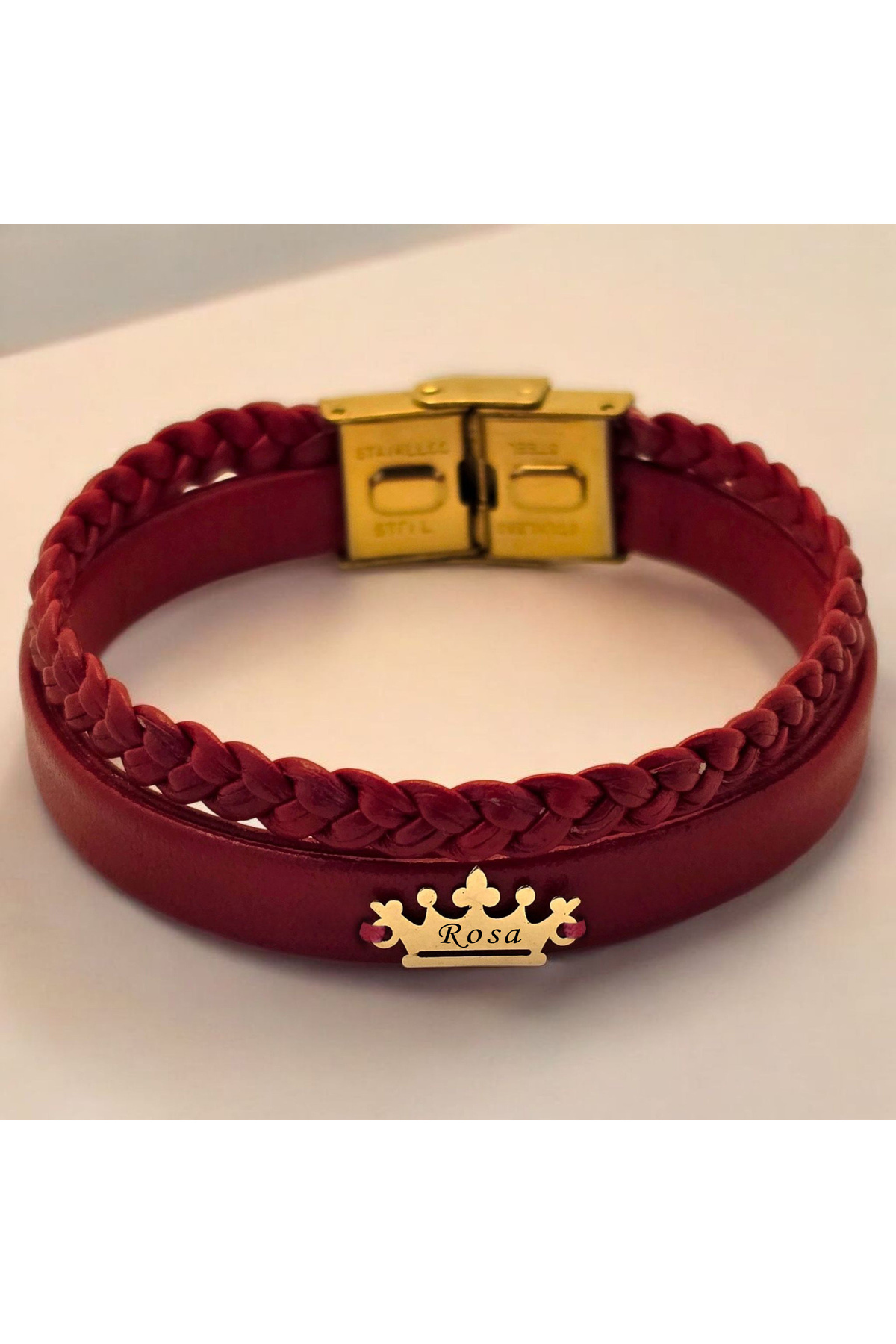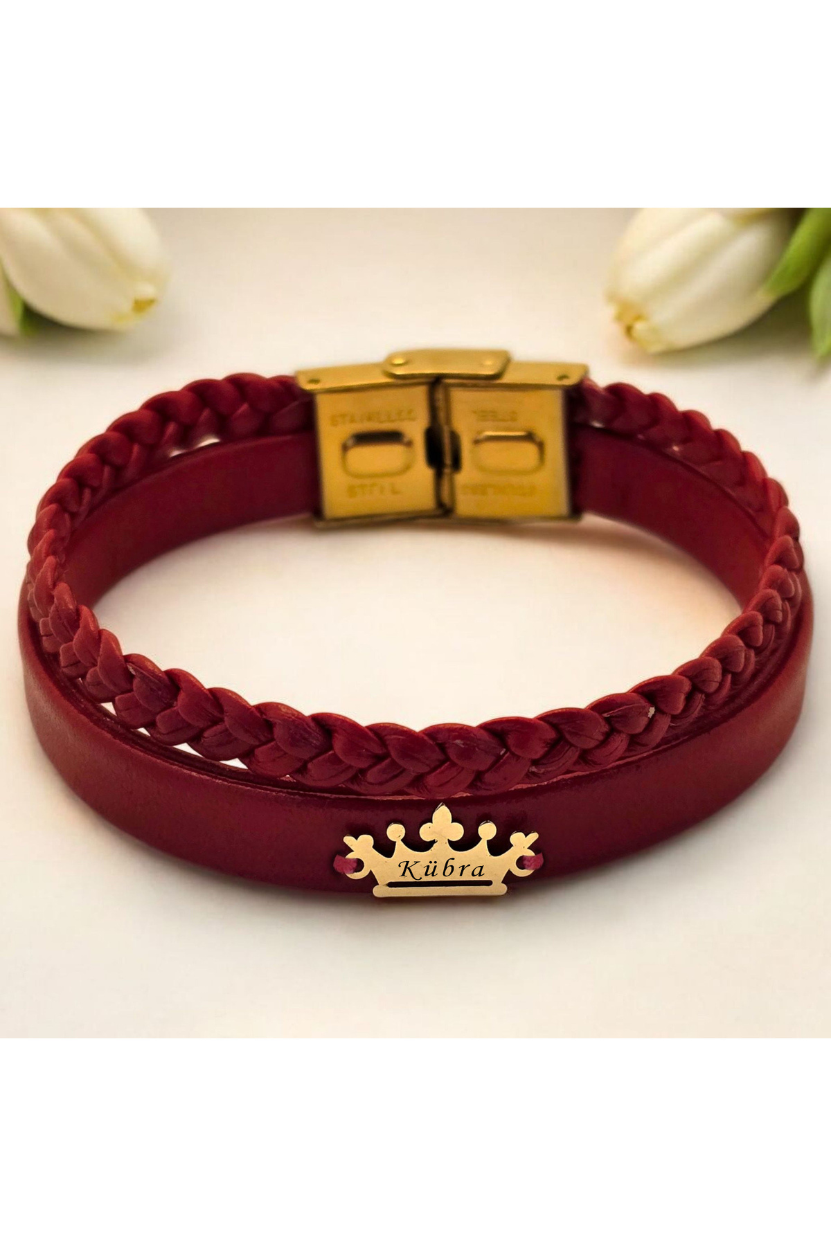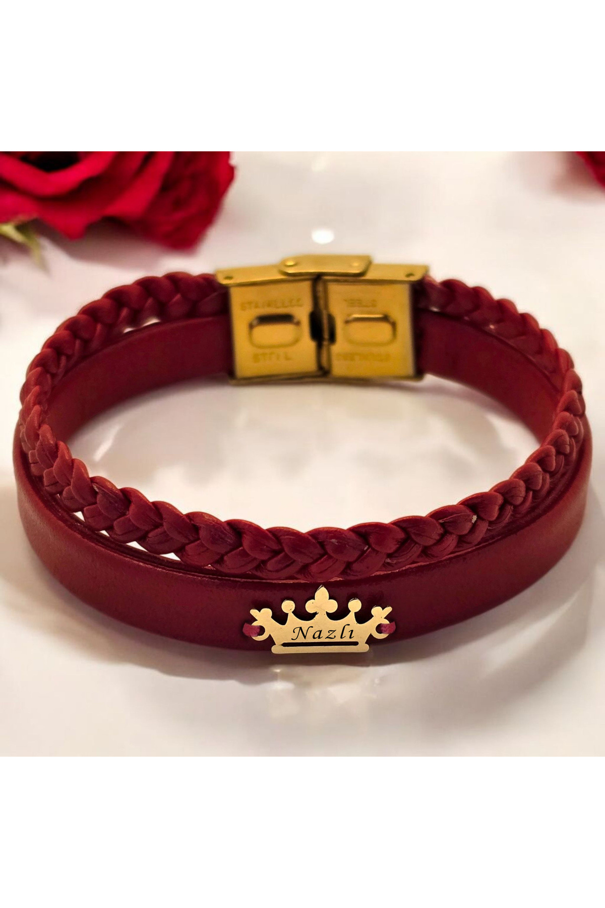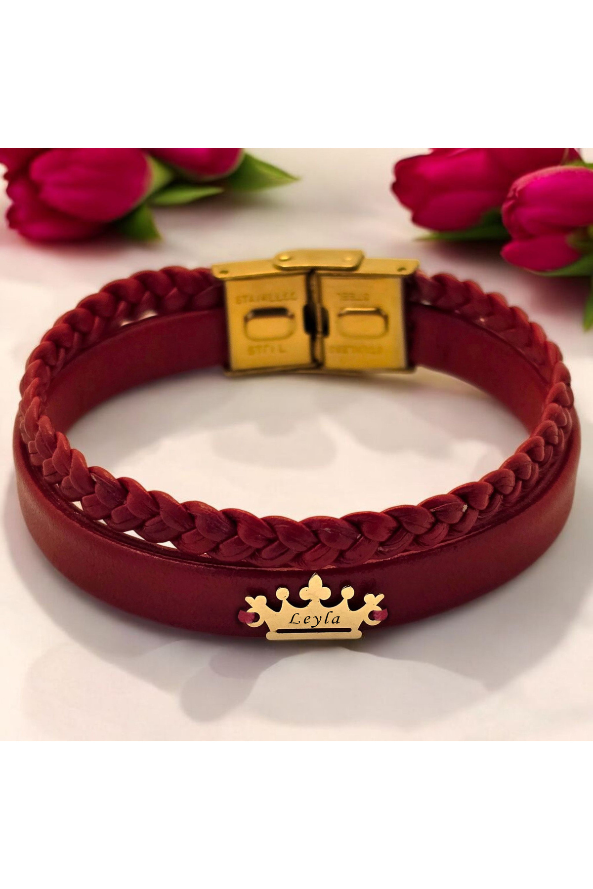 14 Ayar Plakalı Altın Feride İsmine Özel Taç Motifli Koyu Kırmızı Derili Bileklik-493isim 14 Ayar Plakalı Altın Feride İsmine Özel Taç Motifli Koyu Kırmızı Derili Bileklik-493isim 493-kedeta-mofg-MO1 22 cm