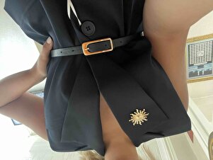 Gold Toka Kemerli Vatkalı Zarif Oversize Yelek Gold Toka Kemerli Vatkalı Zarif Oversize Yelek y2025 XL