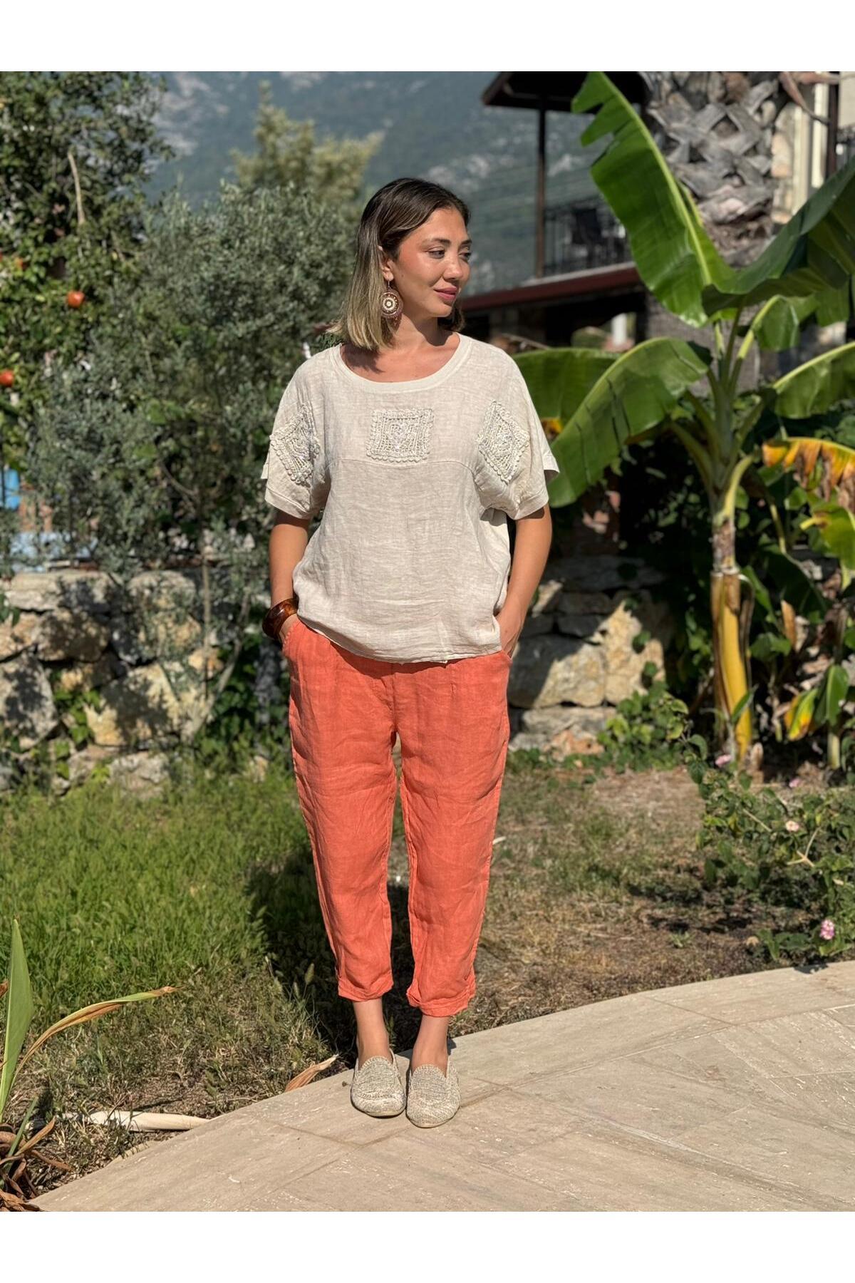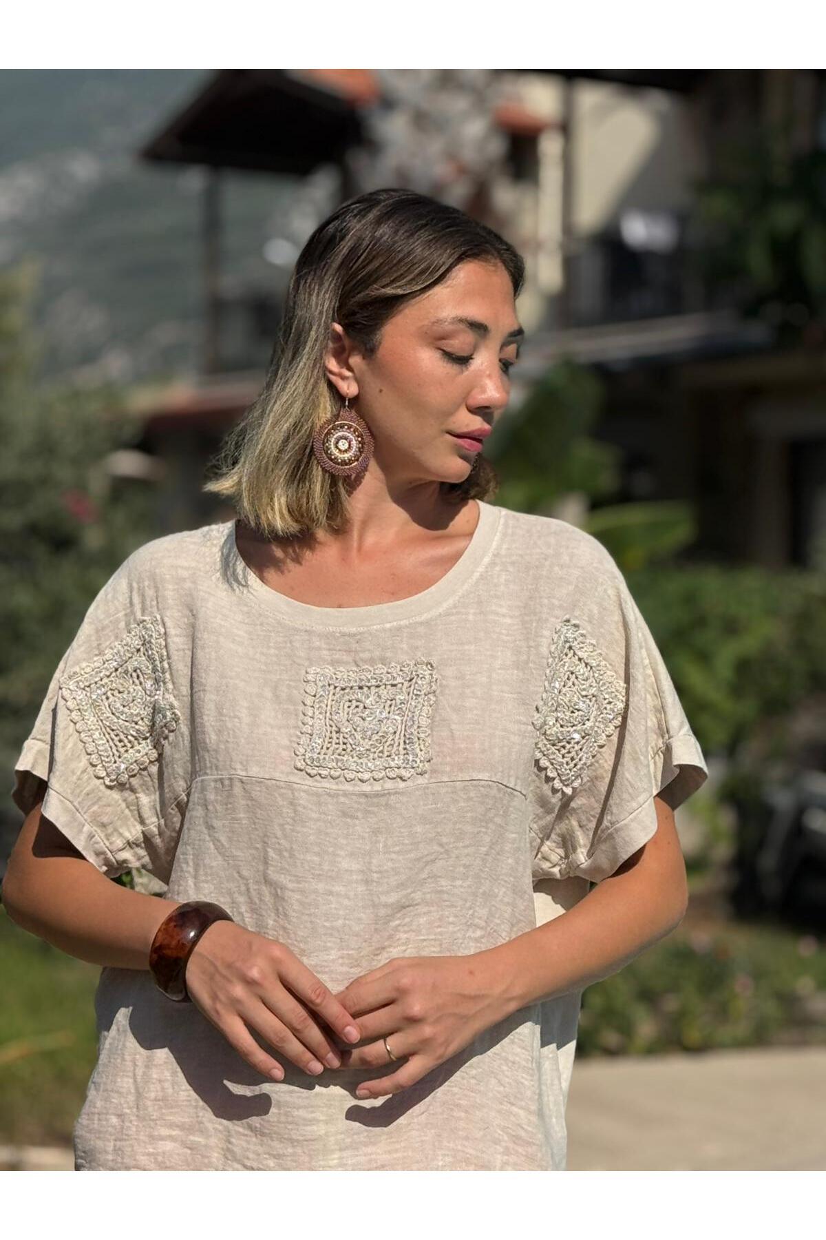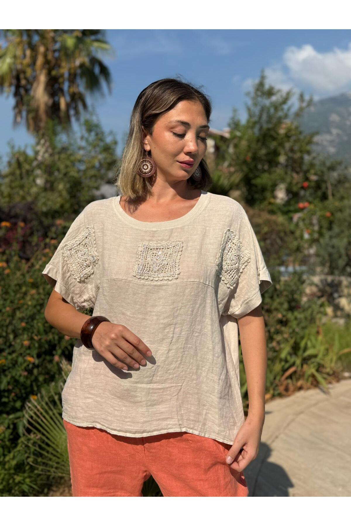 NC61130 İtalyan Sırt File Güpürlü Keten Bluz Krem NC61130 İtalyan Sırt File Güpürlü Keten Bluz Krem NC61130Krem Standart