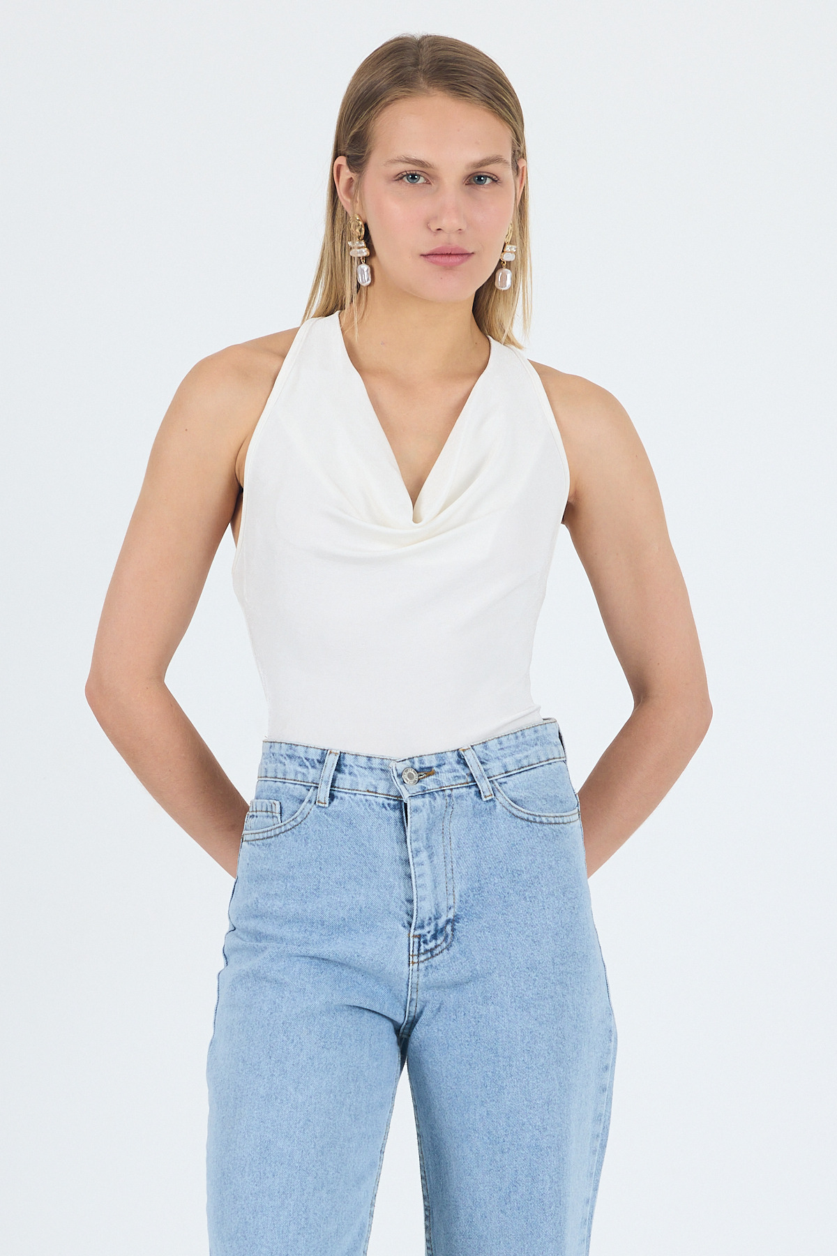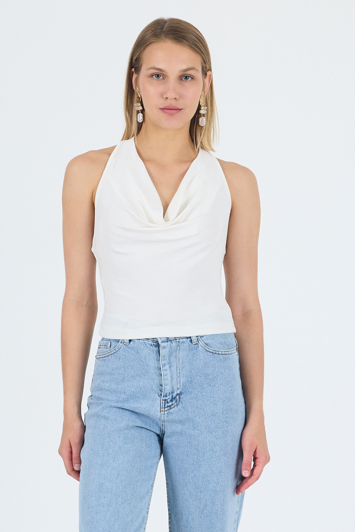 Sırt Dekolteli Kolsuz Bluz - Dökümlü Yaka, Tokalı, Askılı, Esnek Parlak Kumaşlı At001 Sırt Dekolteli Kolsuz Bluz - Dökümlü Yaka, Tokalı, Askılı, Esnek Parlak Kumaşlı At001 AT0001 XL