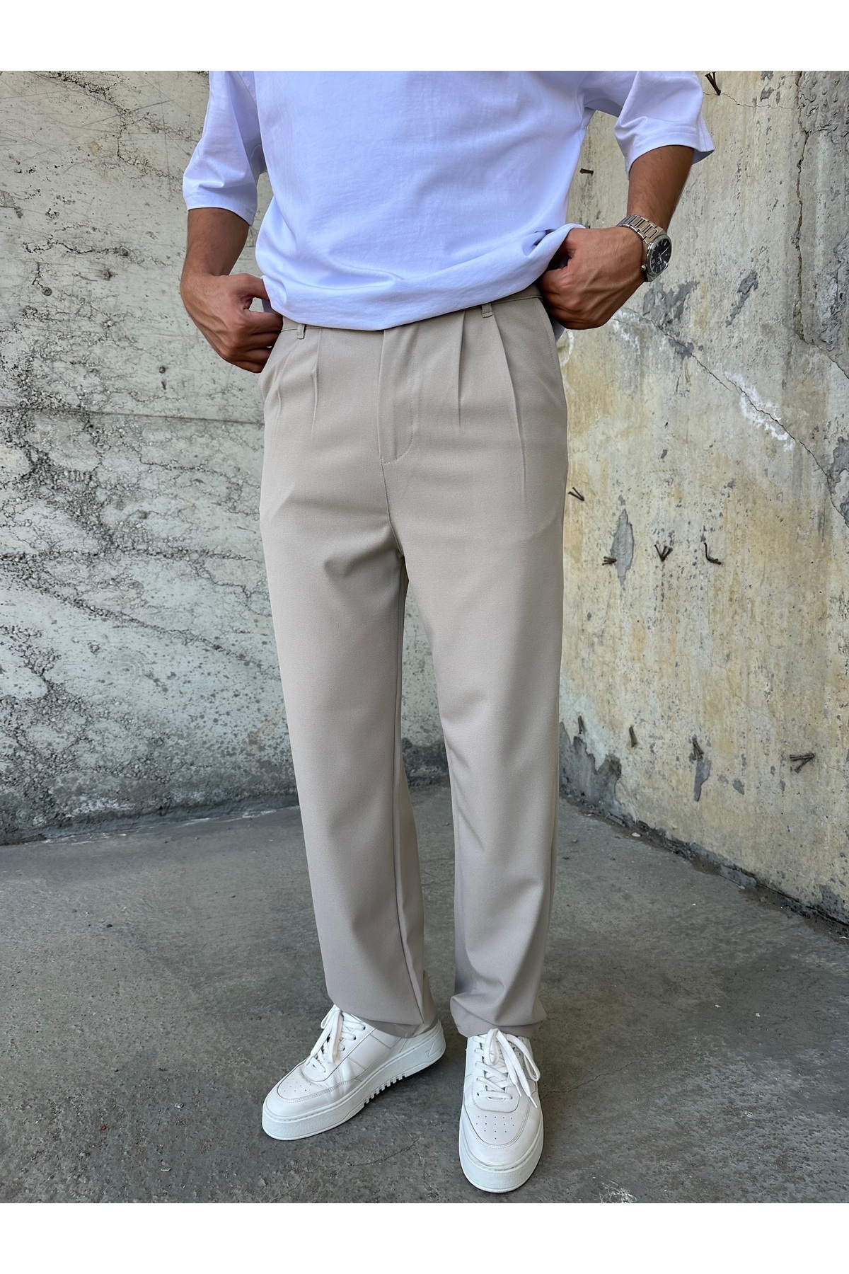 Rahat Kalıp Pileli Kumaş Baggy Pantolon Rahat Kalıp Pileli Kumaş Baggy Pantolon MAKİ-4444 XL