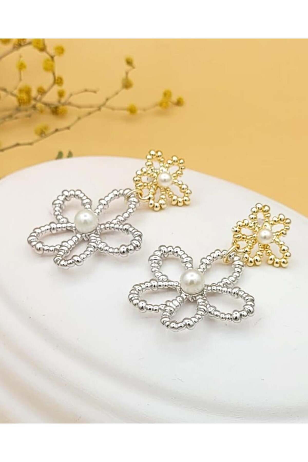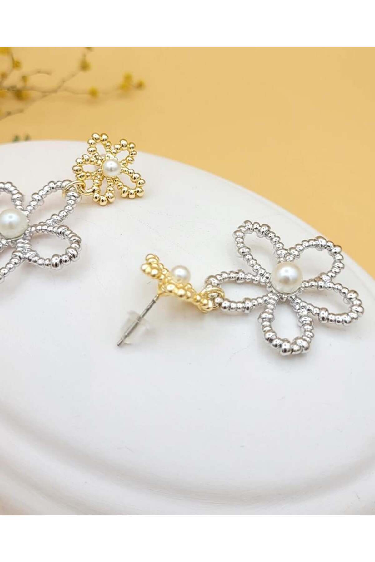 Çift Renkli İnci Çiçeği Küpe Çift Renkli İnci Çiçeği Küpe NV2131 تک سایز