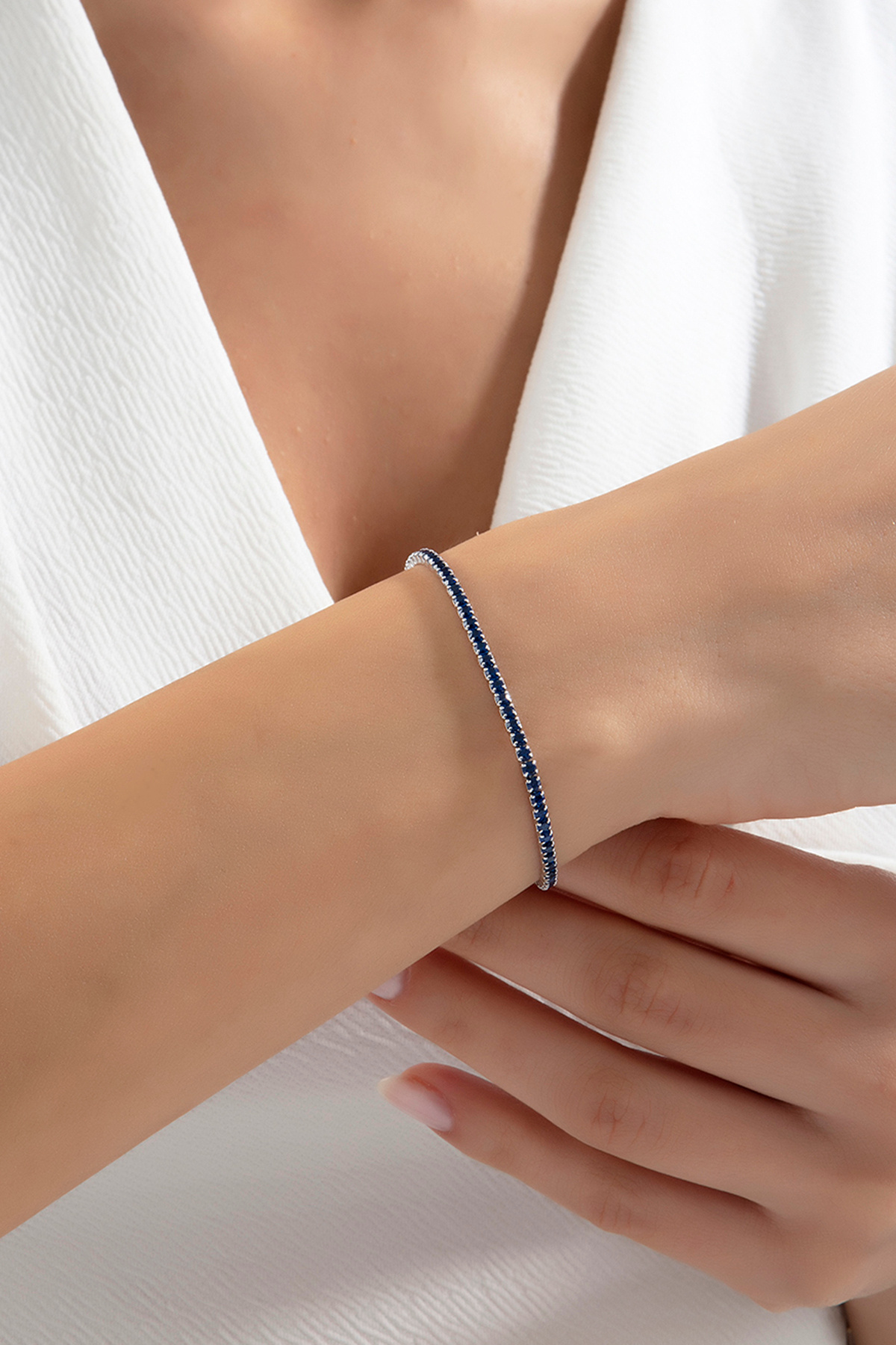Baget Safir Beyaz Taşlı Su Yolu 14 Ayar Altın Suyu Kadın Gümüş Bileklik Baget Safir Beyaz Taşlı Su Yolu 14 Ayar Altın Suyu Kadın Gümüş Bileklik SARİVFTSÇT144 18 cm