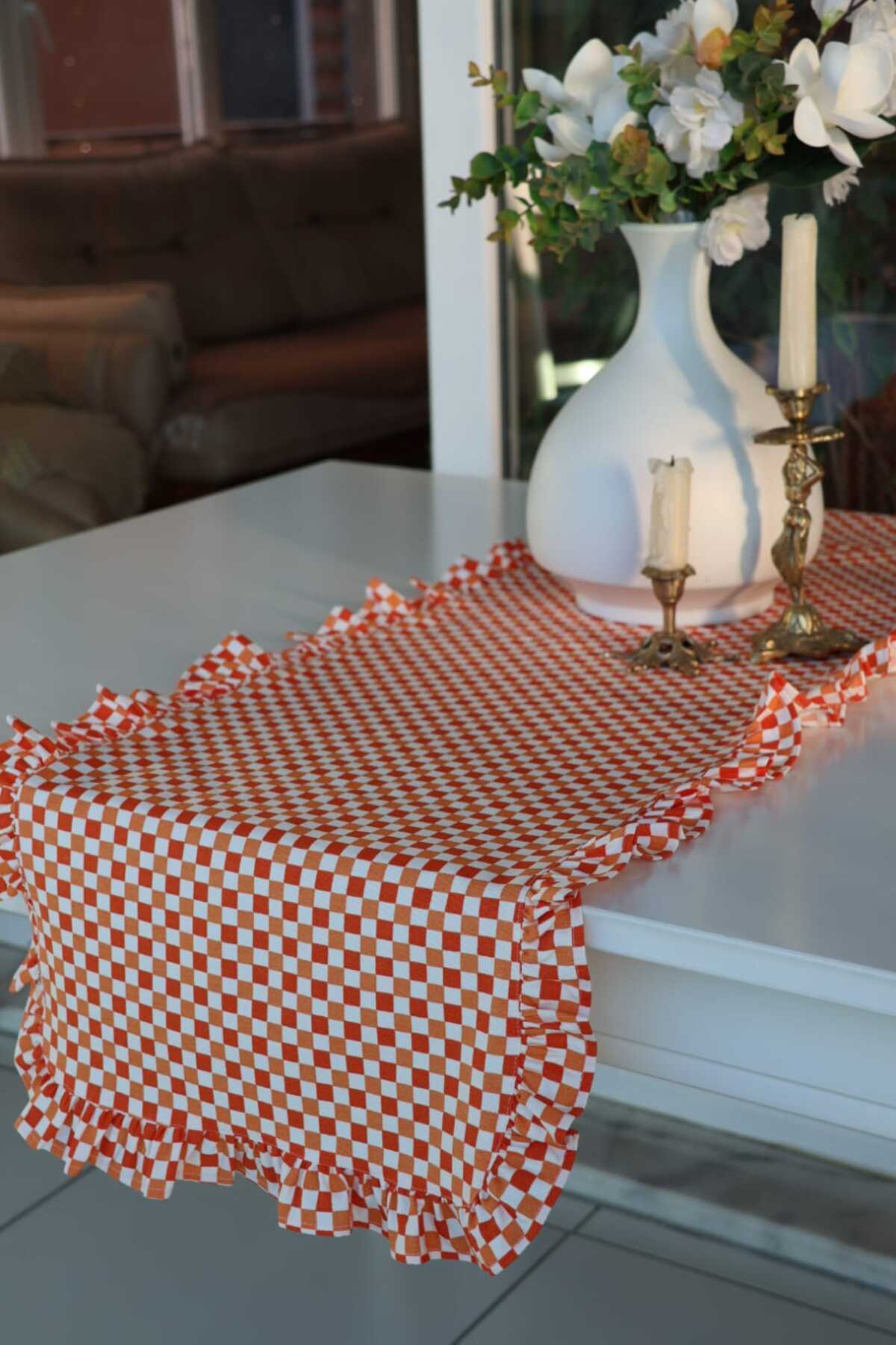 runner fırfırlı dama desenli turuncu duck keten 40x130cm runner fırfırlı dama desenli turuncu duck keten 40x130cm ytpouer46387 تک سایز