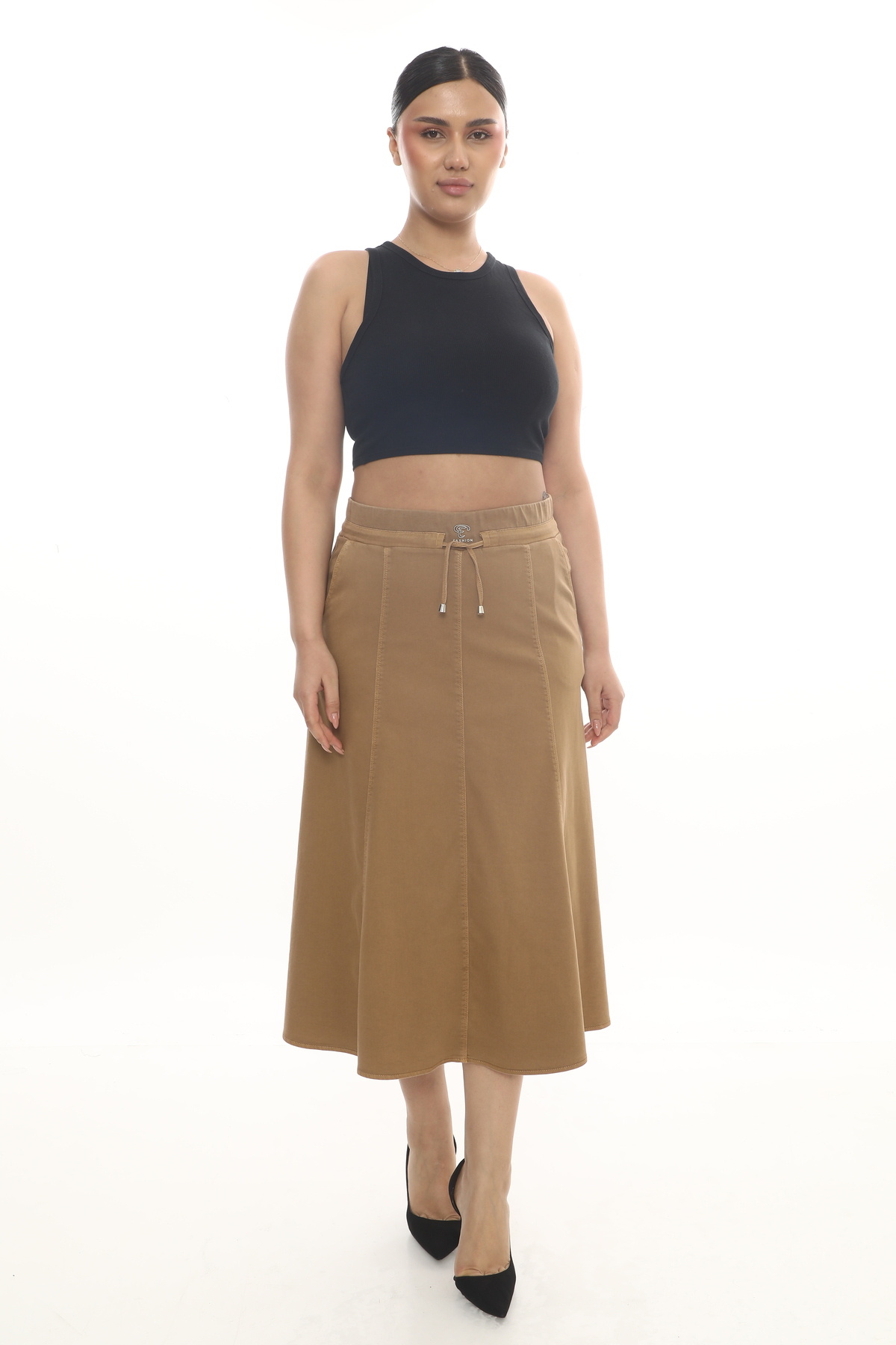 Kadın Yarı Deri Yarı Viskon Vizon Rengi Uzun Etek Kadın Yarı Deri Yarı Viskon Vizon Rengi Uzun Etek 2-24-4227 42