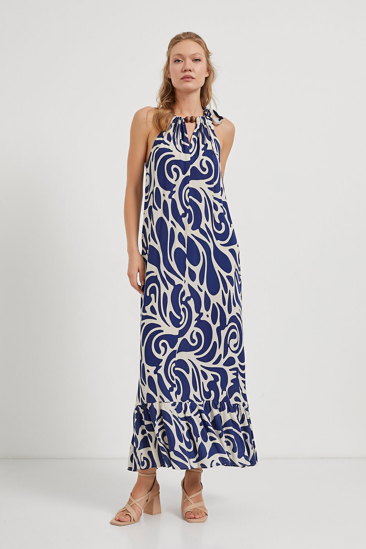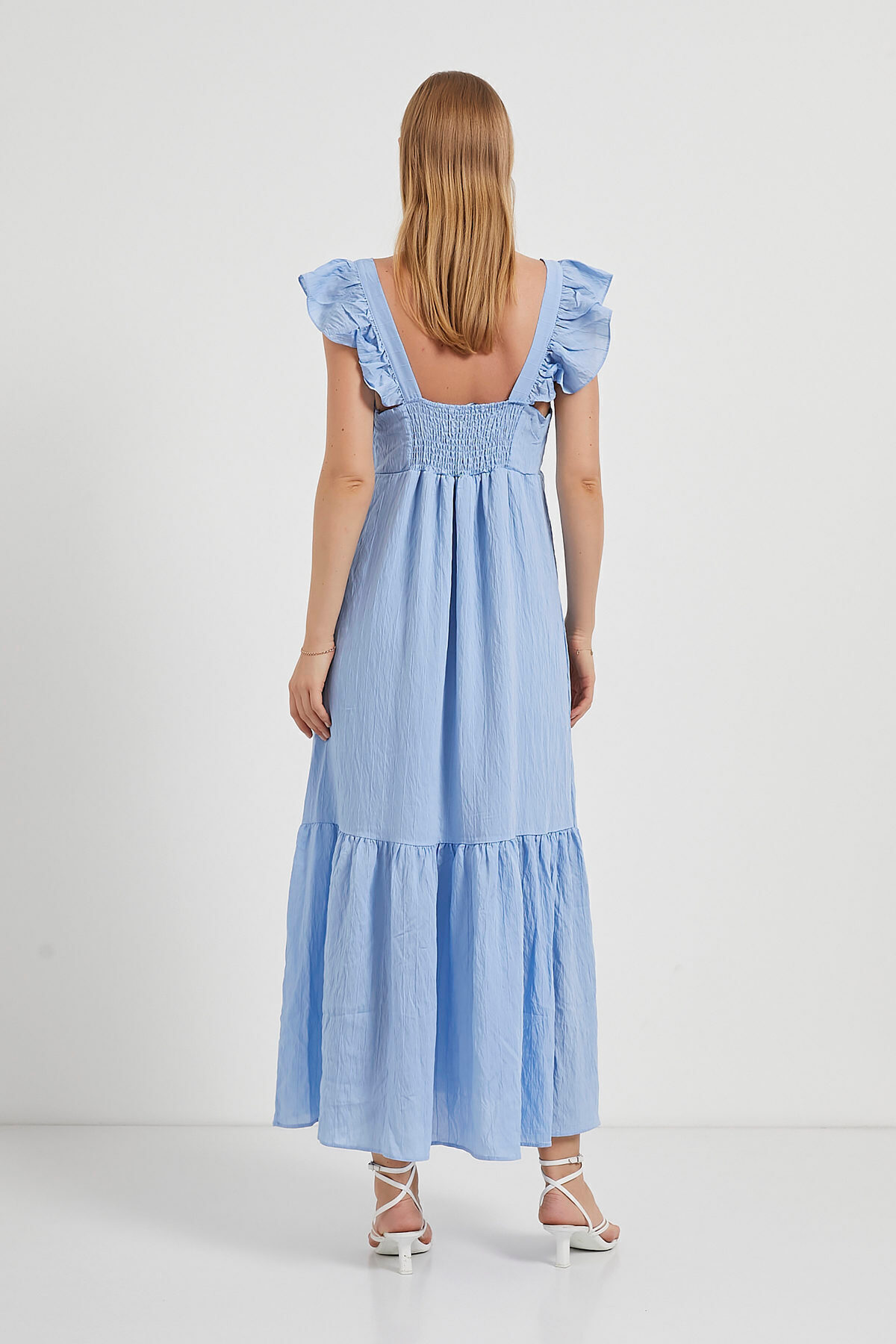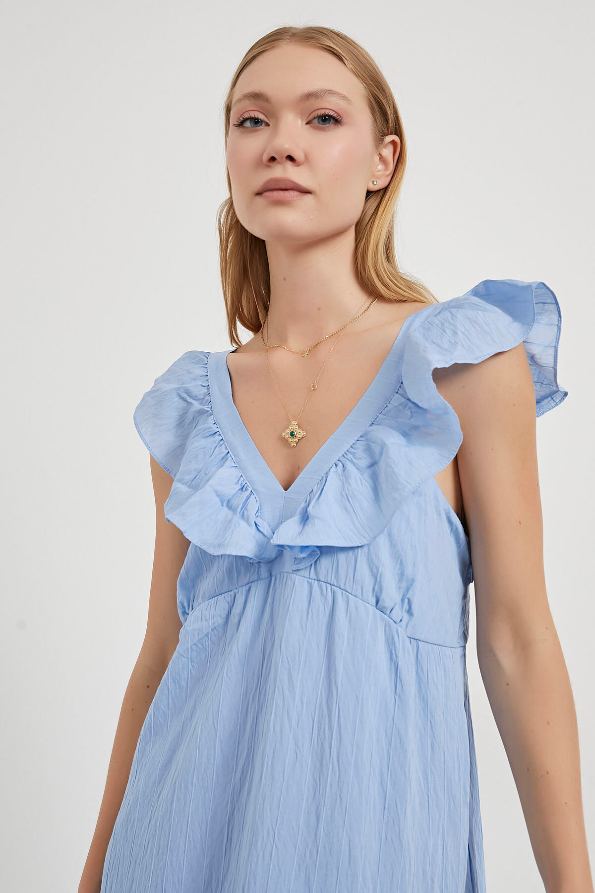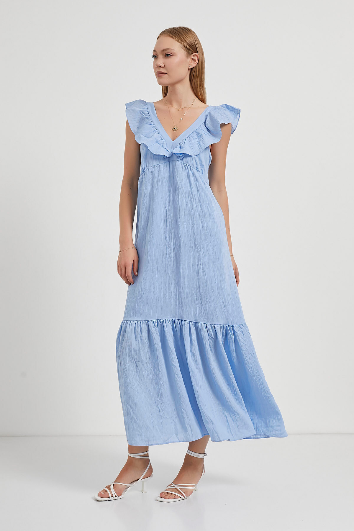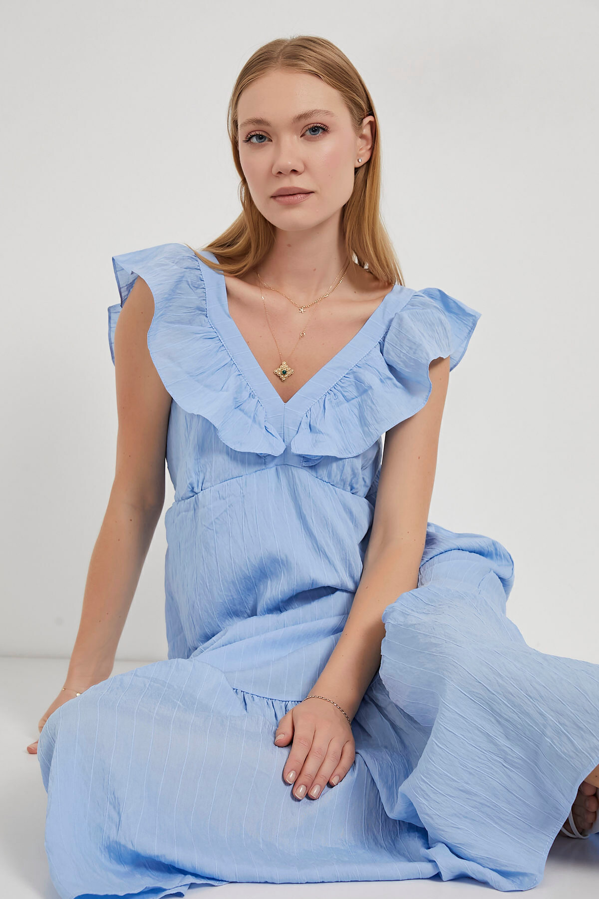 Kadın Fırfırlı V Yaka Kolsuz Bol Mavi Uzun Elbise Kadın Fırfırlı V Yaka Kolsuz Bol Mavi Uzun Elbise 532-5YB4590ELB XL