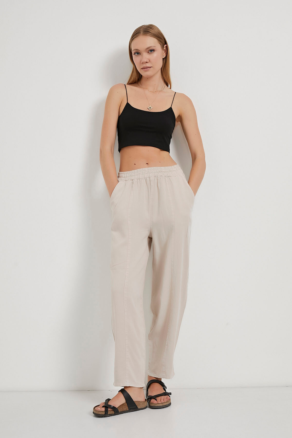 Kadın Balon Fit Beli Lastikli Bol Kahve Pantolon Kadın Balon Fit Beli Lastikli Bol Kahve Pantolon 340-5YB5456PTL XL