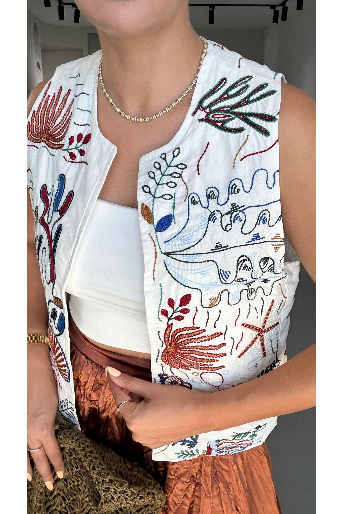 Nakış Detay Ekru Keten Yelek Nakış Detay Ekru Keten Yelek YLK-0062-EKR L