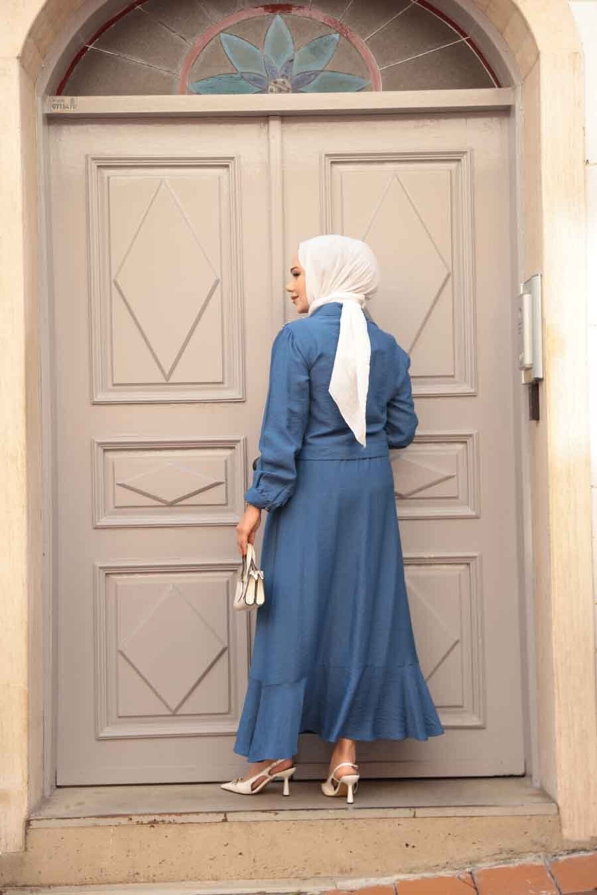Düğmeli İndigo Mavisi Tesettür Etekli İkili Takım 44741IM Düğmeli İndigo Mavisi Tesettür Etekli İkili Takım 44741IM MMR-44741 46