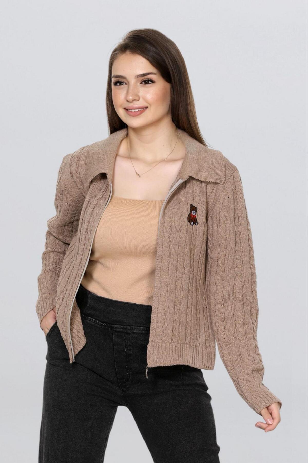 Kadın Ayıcık Nakışlı Detaylı Fermuarlı Örgü Hırka Kadın Ayıcık Nakışlı Detaylı Fermuarlı Örgü Hırka FLT1009 Standart