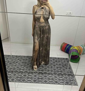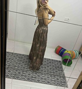 Ruadhan Boncuk Detaylı Vizon Uzun Elbise Ruadhan Boncuk Detaylı Vizon Uzun Elbise B31S3640W1 L