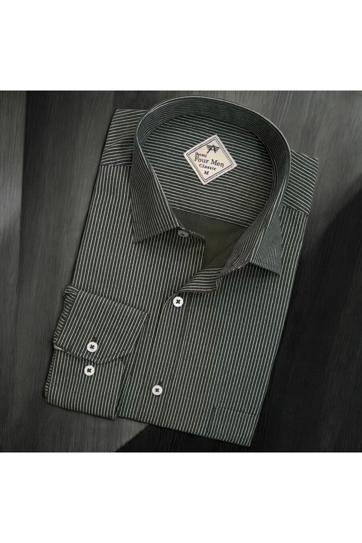 Erkek Klasik Geniş Rahat Kesim Cepli Çizgili Uzun Kollu Pamuk Gömlek Erkek Klasik Geniş Rahat Kesim Cepli Çizgili Uzun Kollu Pamuk Gömlek GG2410 4XL