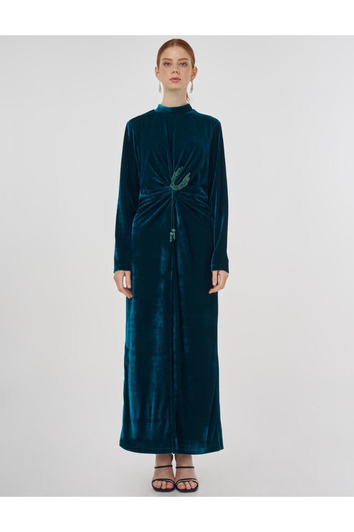 Aksesuar Detaylı Kadife Elbise Zümrüt Aksesuar Detaylı Kadife Elbise Zümrüt KA-A24-23040 44