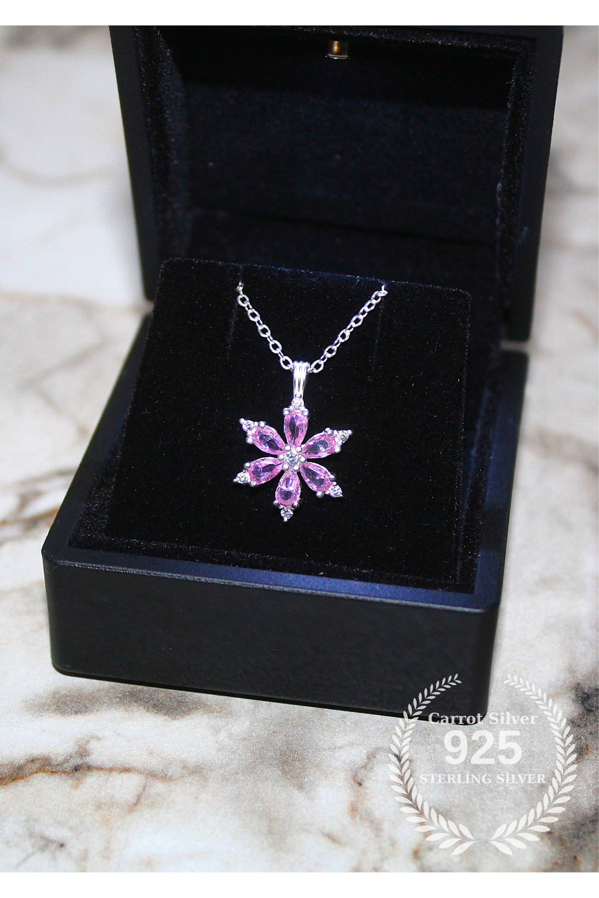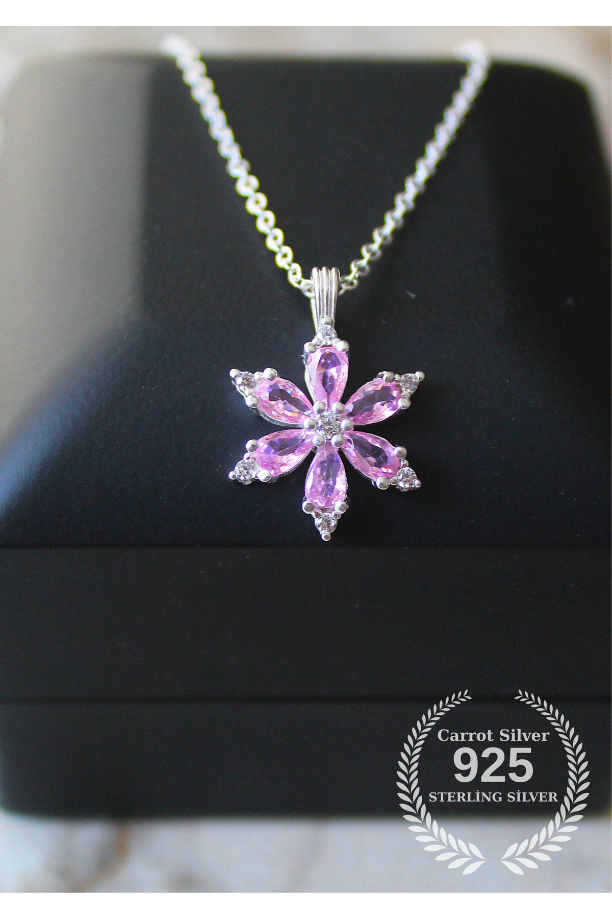 925 Ayar Gümüş Pembe Taşlı Kamelya Çiçeği Kolye-Hediye Paketli-Lotus 925 Ayar Gümüş Pembe Taşlı Kamelya Çiçeği Kolye-Hediye Paketli-Lotus crt-pmp-kmly 45 cm