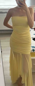 Straplez Eteği Şifon Elbise - SARI Straplez Eteği Şifon Elbise - SARI P17541S472 L