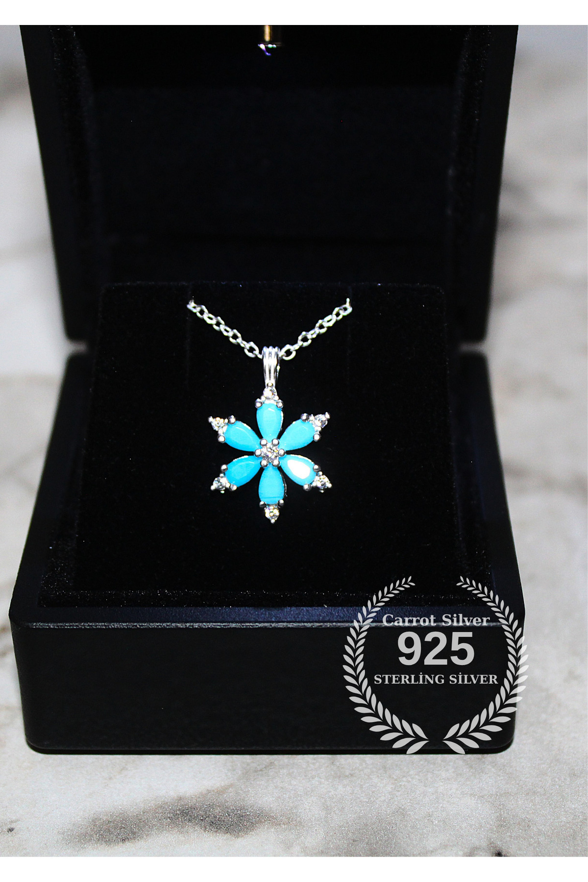 925 Ayar Gümüş Firuze Taşlı Kamelya Çiçeği Kolye-Hediye Paketli-Lotus 925 Ayar Gümüş Firuze Taşlı Kamelya Çiçeği Kolye-Hediye Paketli-Lotus crt-firuze 45 cm