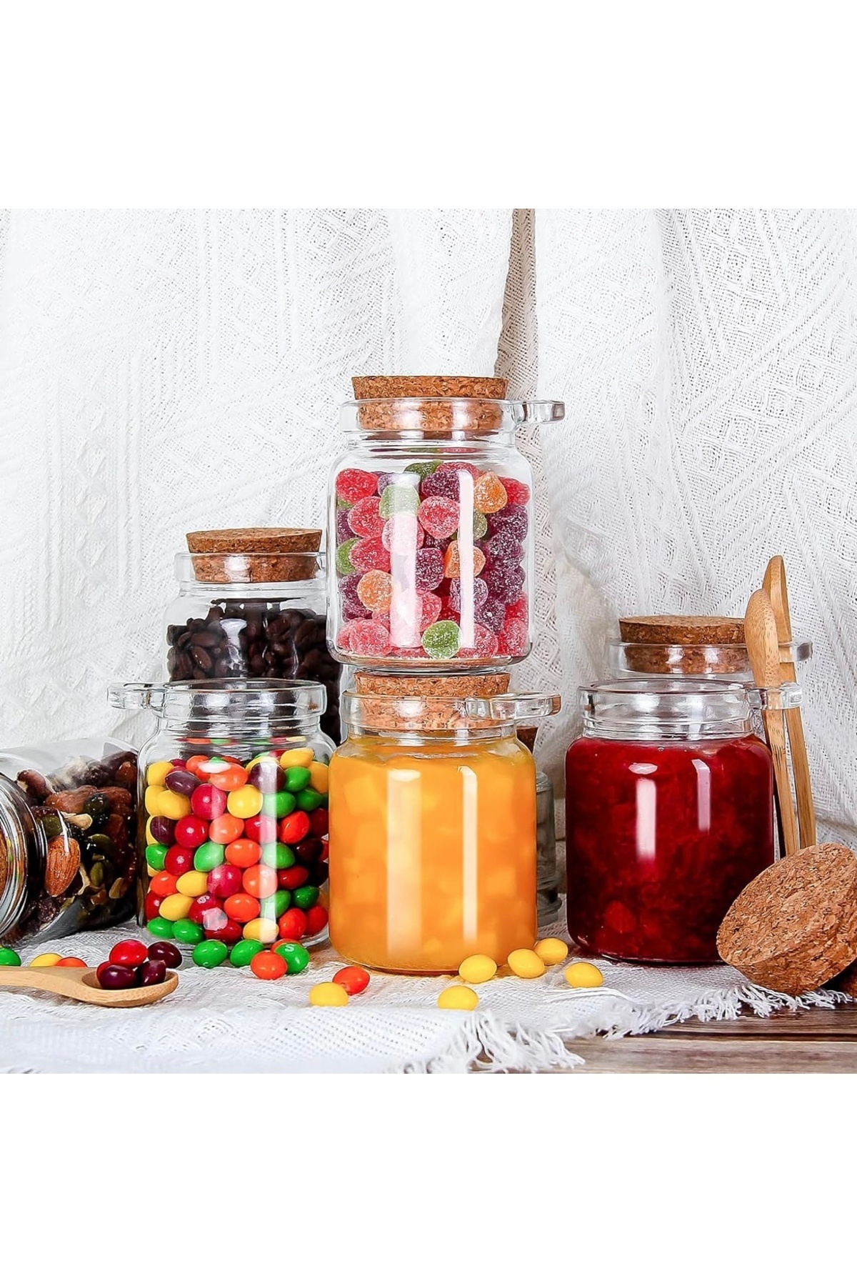 1 Adet 350 ml Mantar Kapaklı Kaşıklı ve Bal Kaşık Hediyeli Cam Kavanoz 1 Adet 350 ml Mantar Kapaklı Kaşıklı ve Bal Kaşık Hediyeli Cam Kavanoz y801 تک سایز