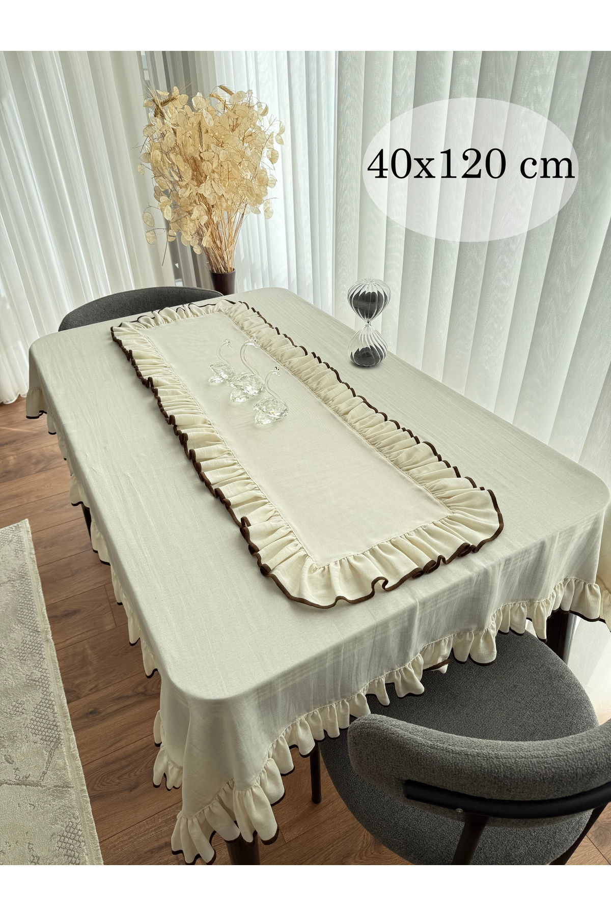 Biyeli Görünümlü Fırfırlı Beyaz Keten RUNNER Şık Dekoratif 40X80CM Biyeli Görünümlü Fırfırlı Beyaz Keten RUNNER Şık Dekoratif 40X80CM ARS-RNBY-1 تک سایز