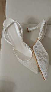Kadın dantel beyaz ayakkabı topuklu Kadın dantel beyaz ayakkabı topuklu y238h87 40