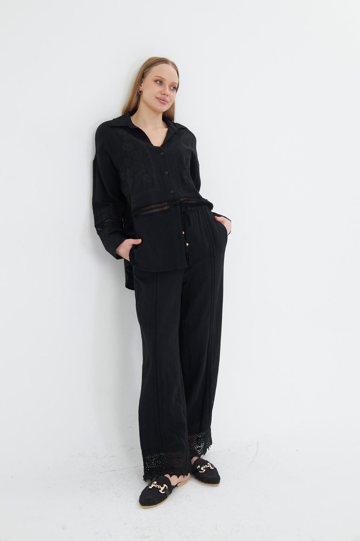 Çiçek Nakışlı Müslin Gömlek Çiçek Nakışlı Müslin Gömlek GML0284Y XL
