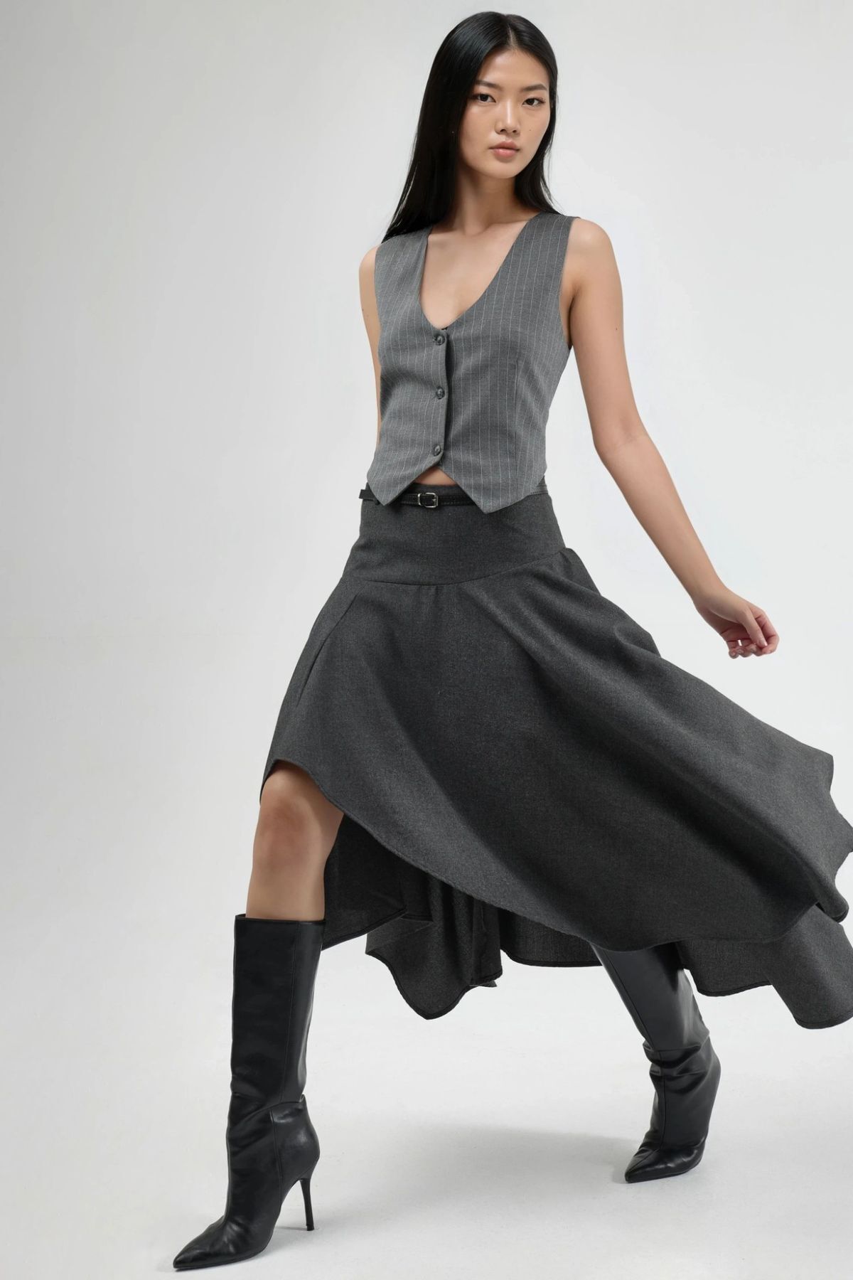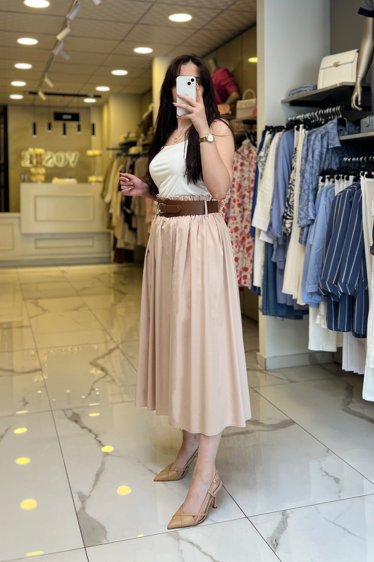 Ekol Kum Beli Lastikli Kemerli Midi Boy Etek Ekol Kum Beli Lastikli Kemerli Midi Boy Etek 10544KUM 40