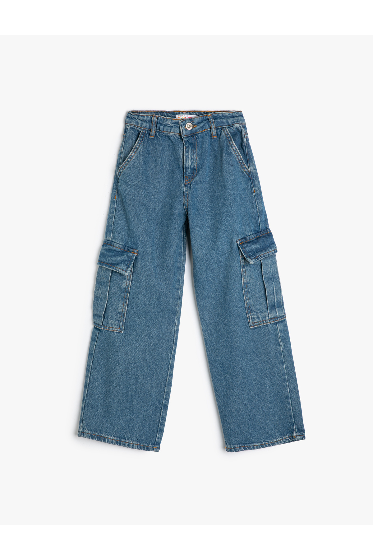 Pamuklu Cep Detaylı Geniş Paça Kargo Denim Pantolon Pamuklu Cep Detaylı Geniş Paça Kargo Denim Pantolon 6WKG40026AD Standart