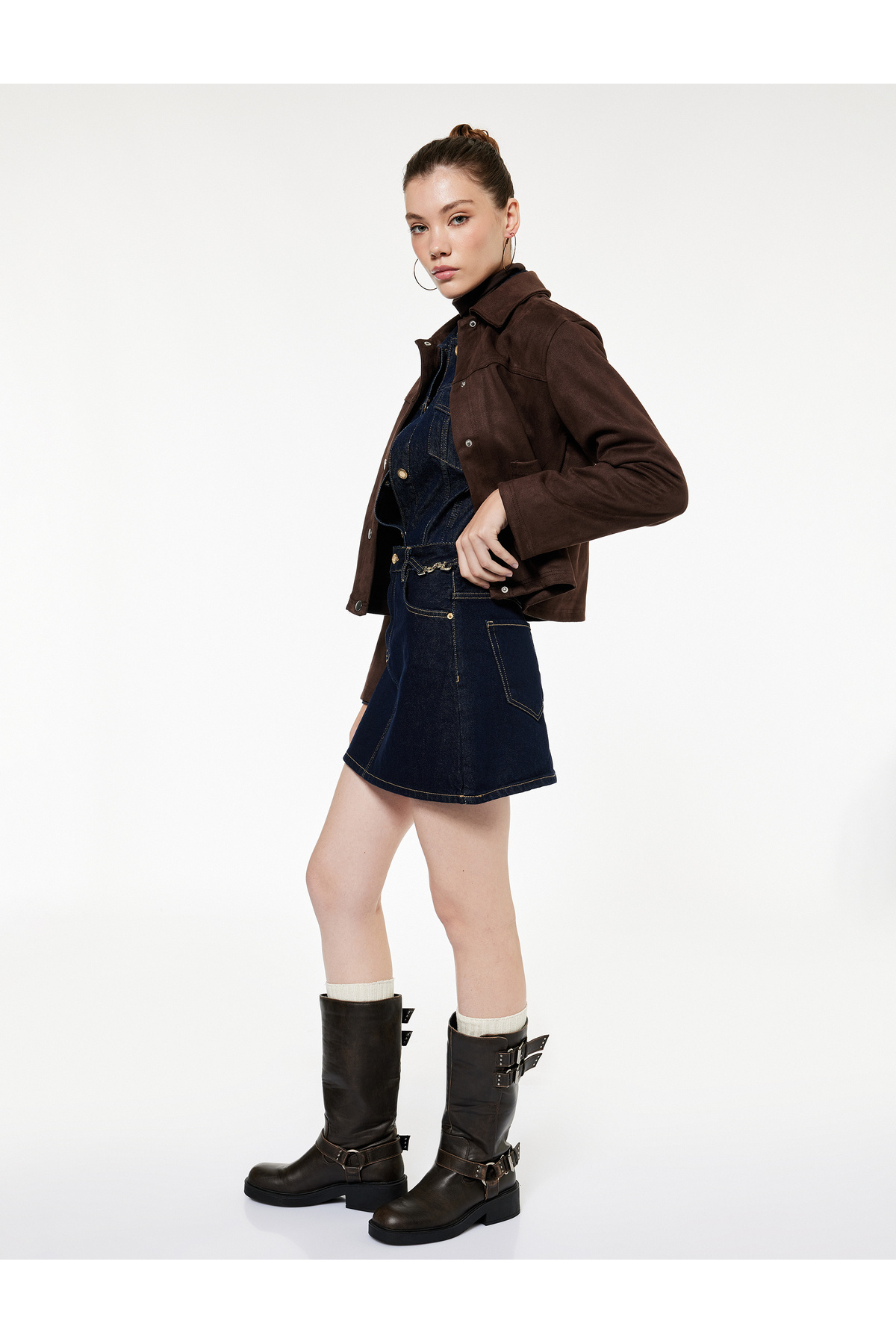 Pamuklu Normal Bel Asimetrik Kesim Düğmeli Denim Şort Etek Pamuklu Normal Bel Asimetrik Kesim Düğmeli Denim Şort Etek 6WAL40003MD 42