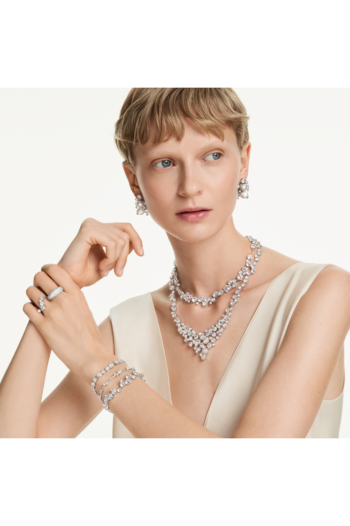 Constella Kolye, Karışık kesimler, Toka, Beyaz, Rodyum kaplama Constella Kolye, Karışık kesimler, Toka, Beyaz, Rodyum kaplama M5732249 تک سایز