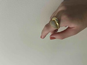 Altın Rengi Damla Figürlü Taşlı Yüzük Altın Rengi Damla Figürlü Taşlı Yüzük 5SW484899 تک سایز