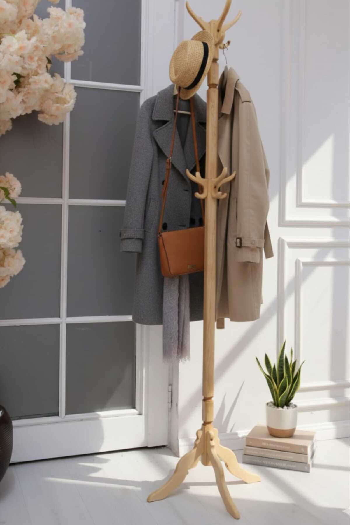 Dekoratif Ahşap Ayaklı Portatif Askılık – 6 Askı, 3 Şemsiye Bölmeli Dekoratif Ahşap Ayaklı Portatif Askılık – 6 Askı, 3 Şemsiye Bölmeli porbig-tasarım-portmanto تک سایز