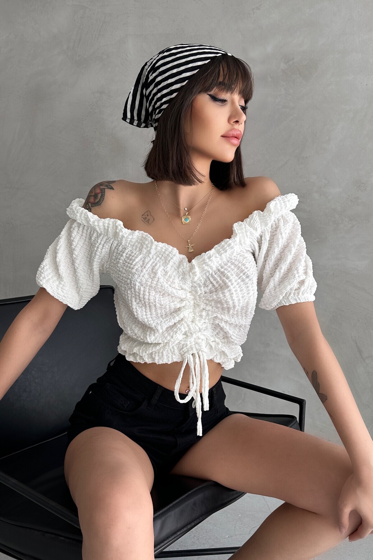 Kadın Beyaz Madonna Yaka Önü Büzgülü Güpür Bluz ALC-X14243 Kadın Beyaz Madonna Yaka Önü Büzgülü Güpür Bluz ALC-X14243 40