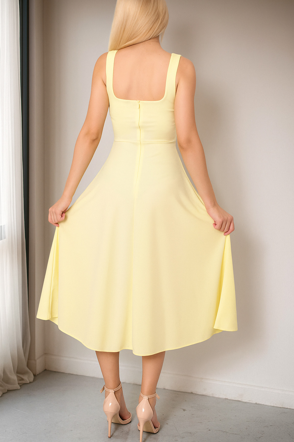 Kare yaka Midi Boy Double Elbise Kare yaka Midi Boy Double Elbise CYL-SS24-070 46